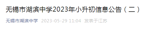 江苏:无锡市湖滨中学2023年小升初信息公告(二)报名时间6月2日17点截止06-02