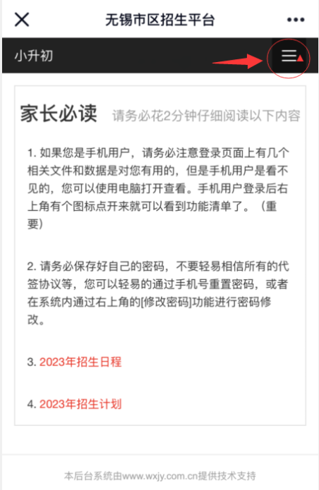 1.访问阳光招生平台“无锡市区初中招生平台”,网址:https://j3.wxeic.com/z_jz/login.aspx