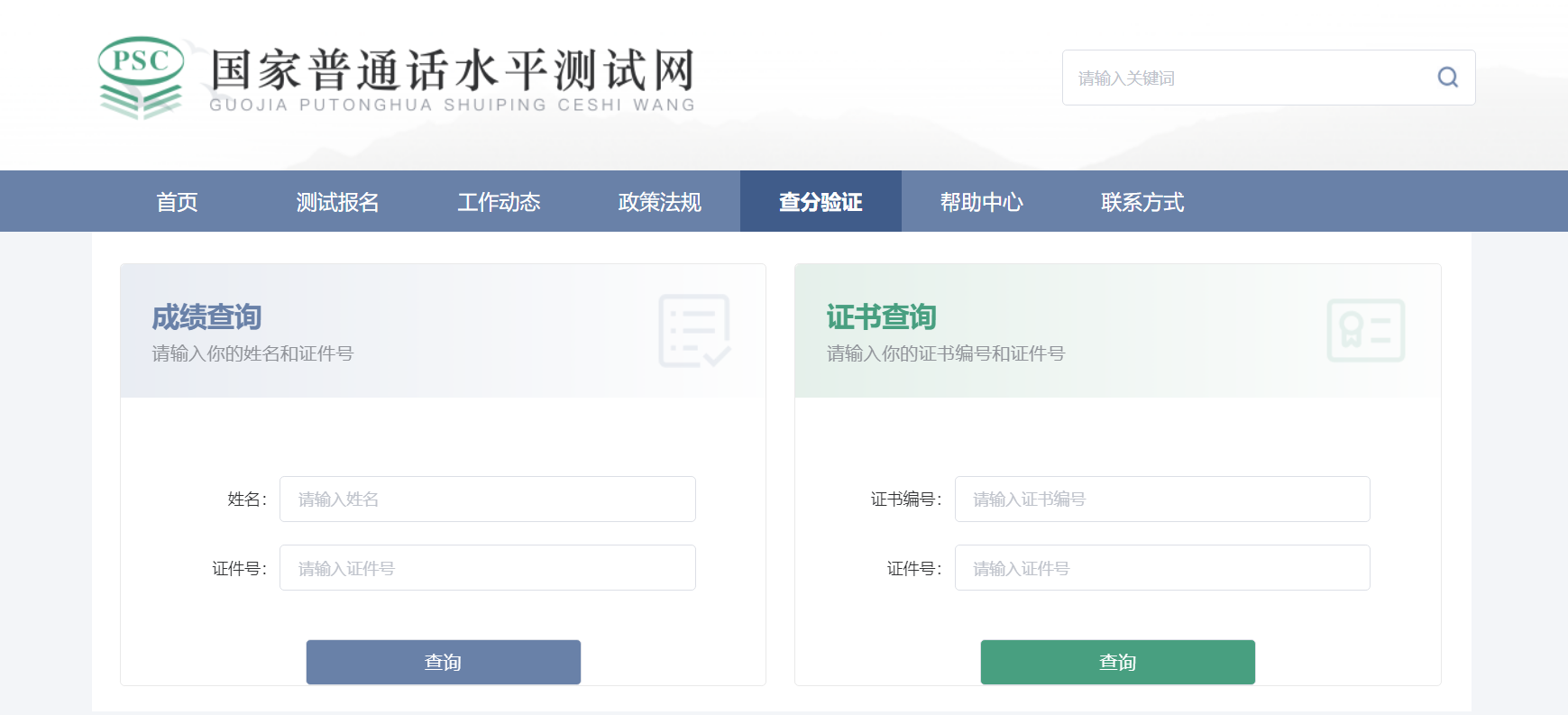 2.关于证书:普通话水平测试等级证书分为纸质证书和电子证书,国家教育部51号令明文规定二者具有同等效力。成绩公示后15日左右,考生可通过“国家政务服务平台”(含APP、微信小程序、支付宝小程序、网站)自行查询电子版本证书。有需要领取纸质版证书的考生请持续关注公告!会另行通知!
