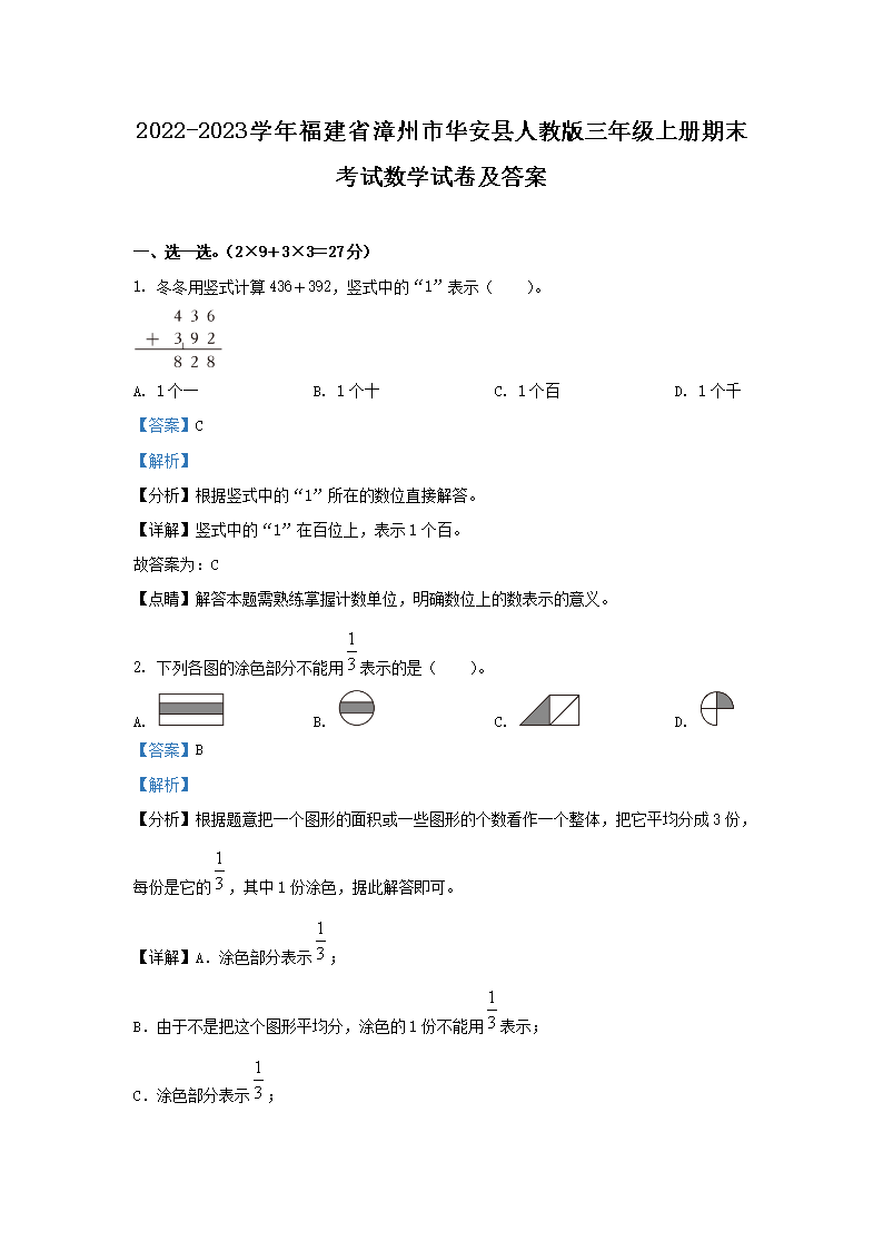 【文档预览】 文档大全网整理发布2022-2023学年福建省漳州市华安县人教版三年级上册期末考试数学试卷及答案(Word版),前五页预览如下:
