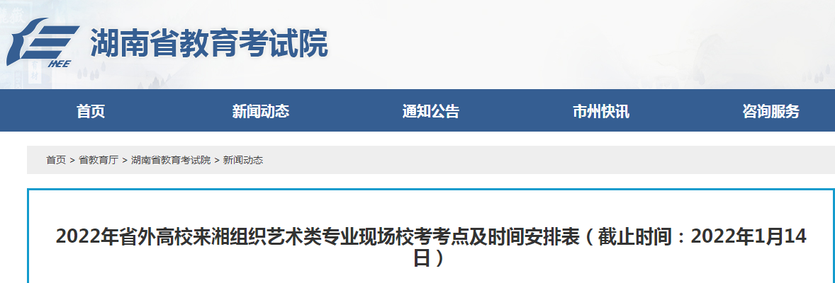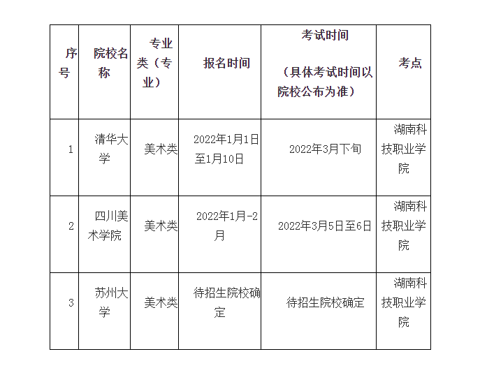 2022年省外高校来湖南组织艺术类专业现场校考考点及时间安排表(截止时间:1月14日)12-25