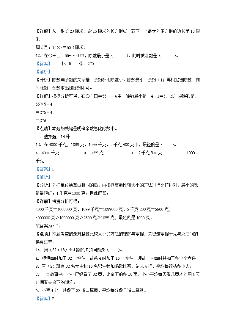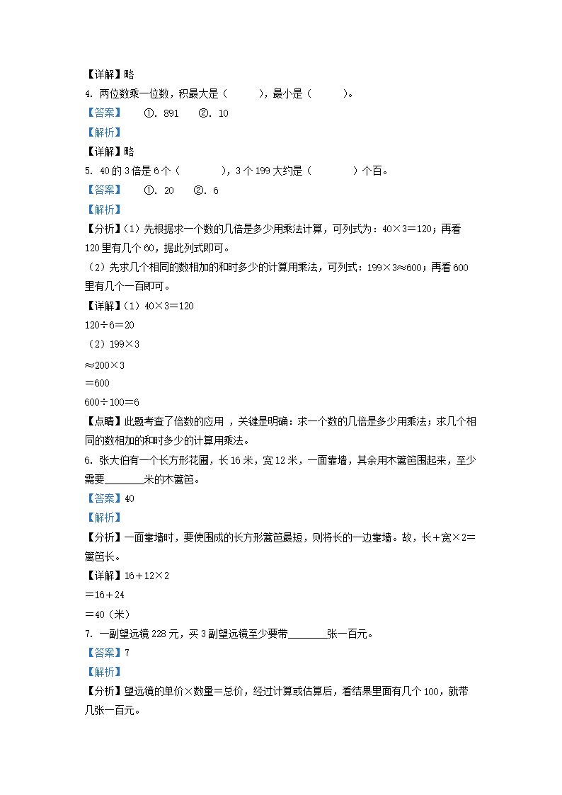 2021-2022学年江苏省淮安市洪泽区苏教版三年级上册期中考试数学试卷及答案(Word版)08-01