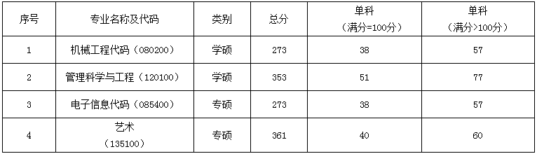 “退役大学生士兵计划”专项分数线确定为:电子信息专硕总分190分;艺术专硕总分300分。