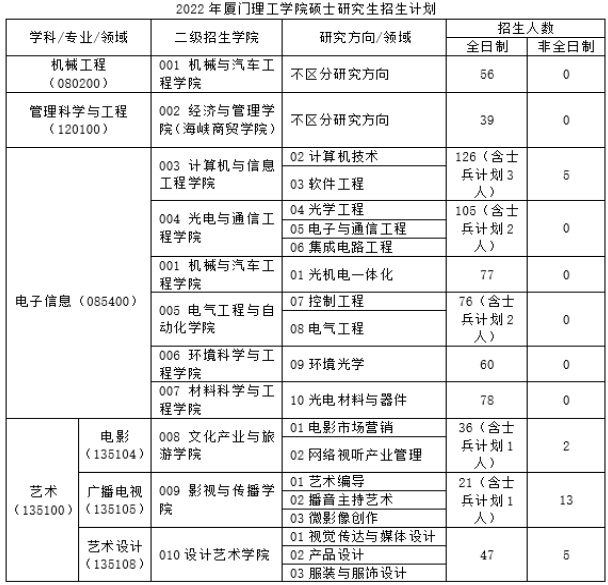 福建省厦门理工学院2022年考研复试分数线(已公布)08-28