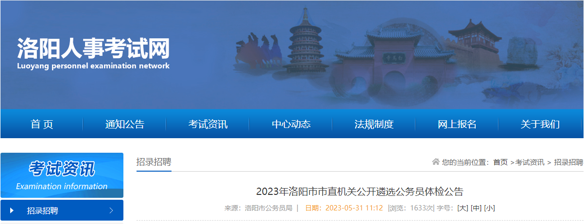 原文标题:2023年洛阳市市直机关公开遴选公务员体检公告