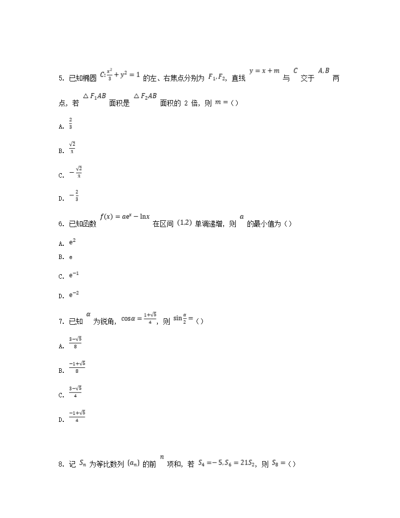 【文档预览】 文档大全网整理发布2023年安徽高考数学真题及答案(Word版),前五页预览如下: