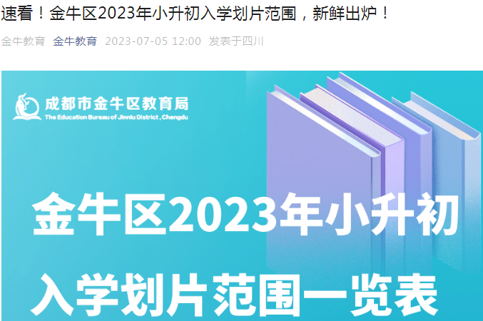 四川成都金牛区2023年小升初入学划片范围公布07-06