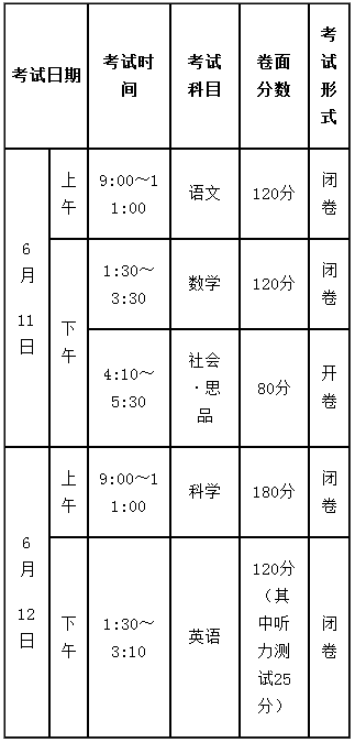 2017浙江丽水中考共五科及时间安排:6月11日至6月12日12-16