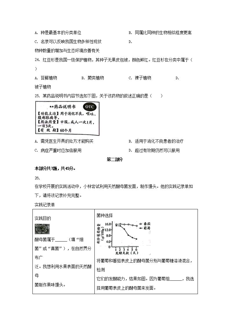 2023年北京昌平中考生物真题及答案(Word版)08-05