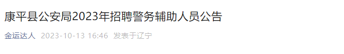 2023年辽宁沈阳康平县公安局招聘警务辅助人员公告(30人)10-18