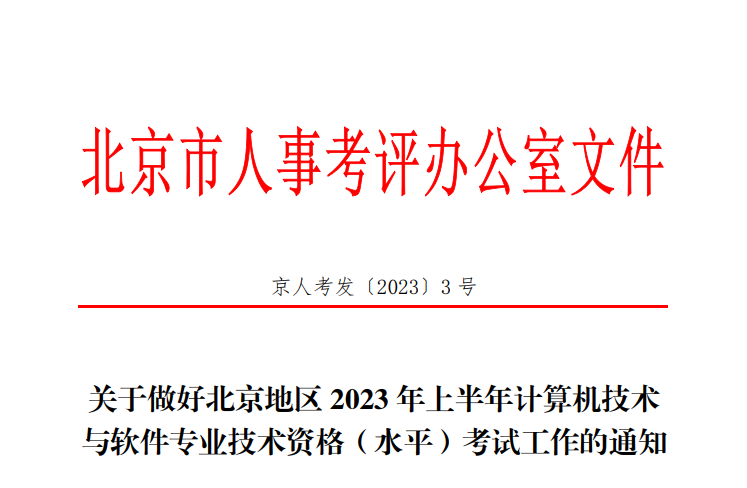 原文标题:关于做好北京地区2023年上半年计算机技术与软件专业技术资格(水平)考试工作的通知