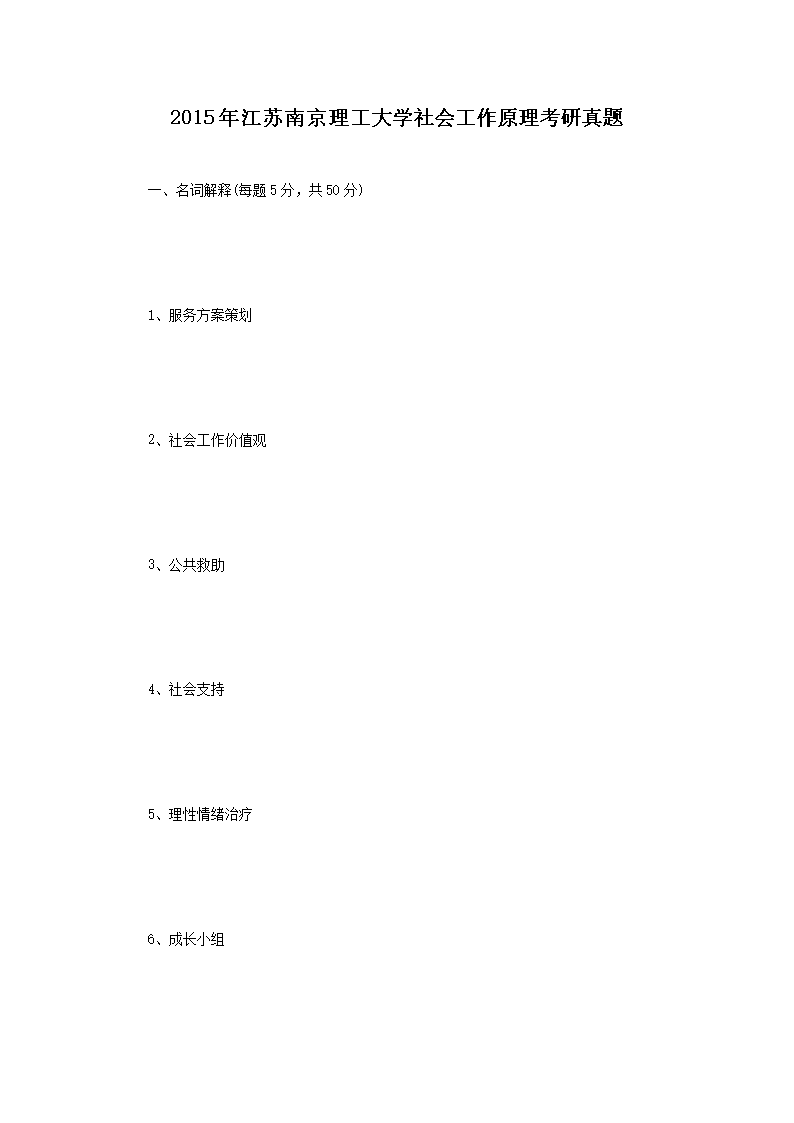 2015年江苏南京理工大学社会工作原理考研真题(Word版)06-29