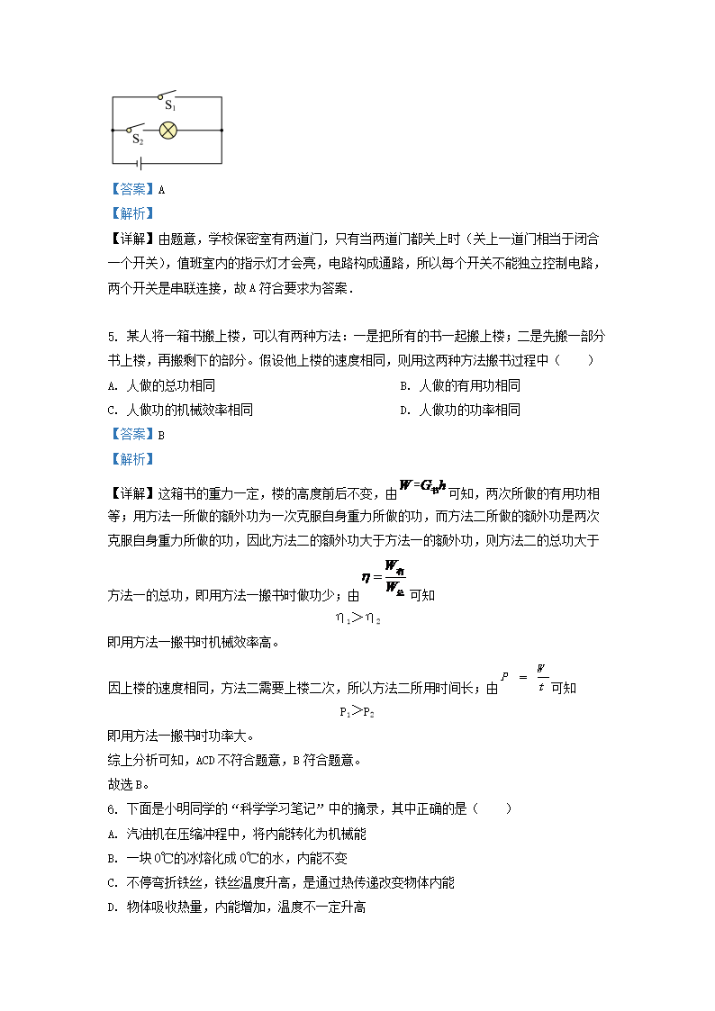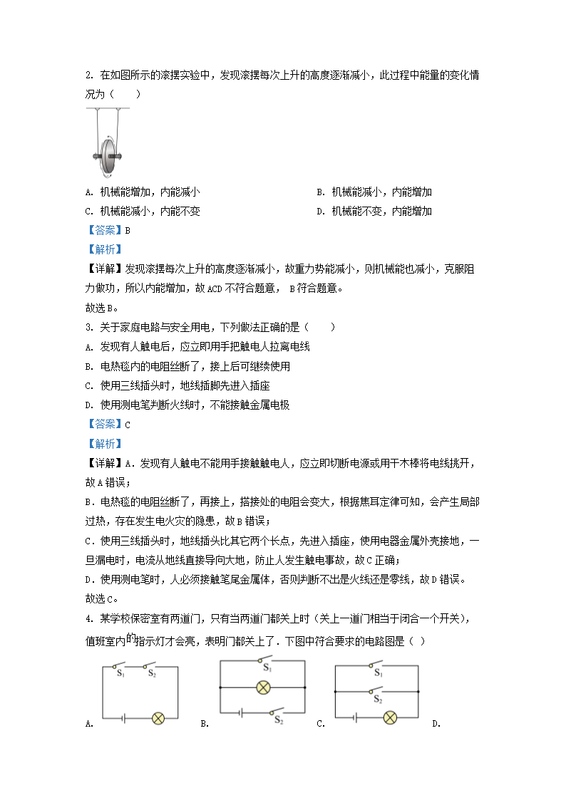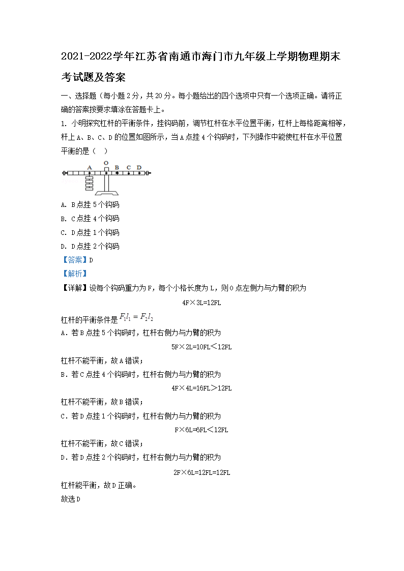 2021-2022学年江苏省南通市海门市九年级上学期物理期末考试题及答案(Word版)10-10