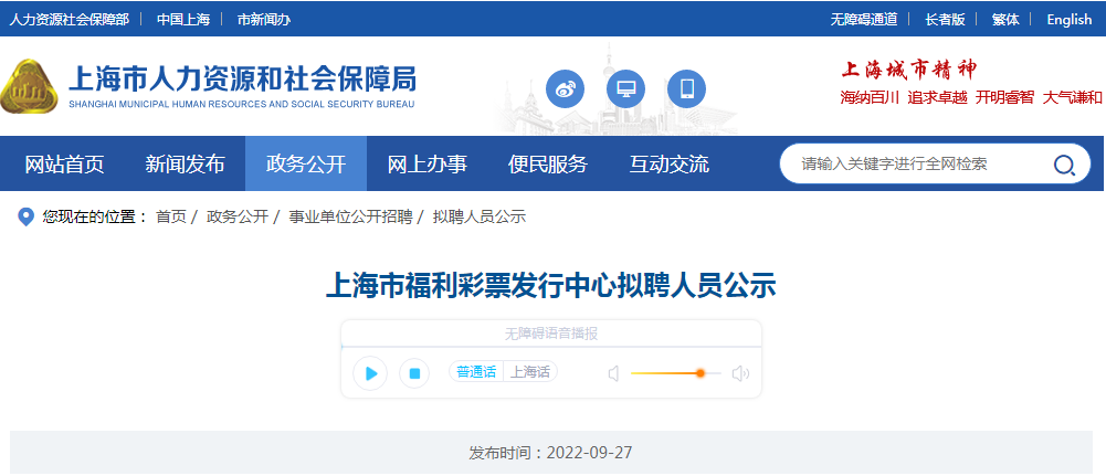 【#事业单位# 导语】2022年上海市福利彩票发行中心拟聘人员公示已发布。公示时间:2022年09月27日—2022年10月04日。®文档大全网为您整理了以下内容,供您参考。