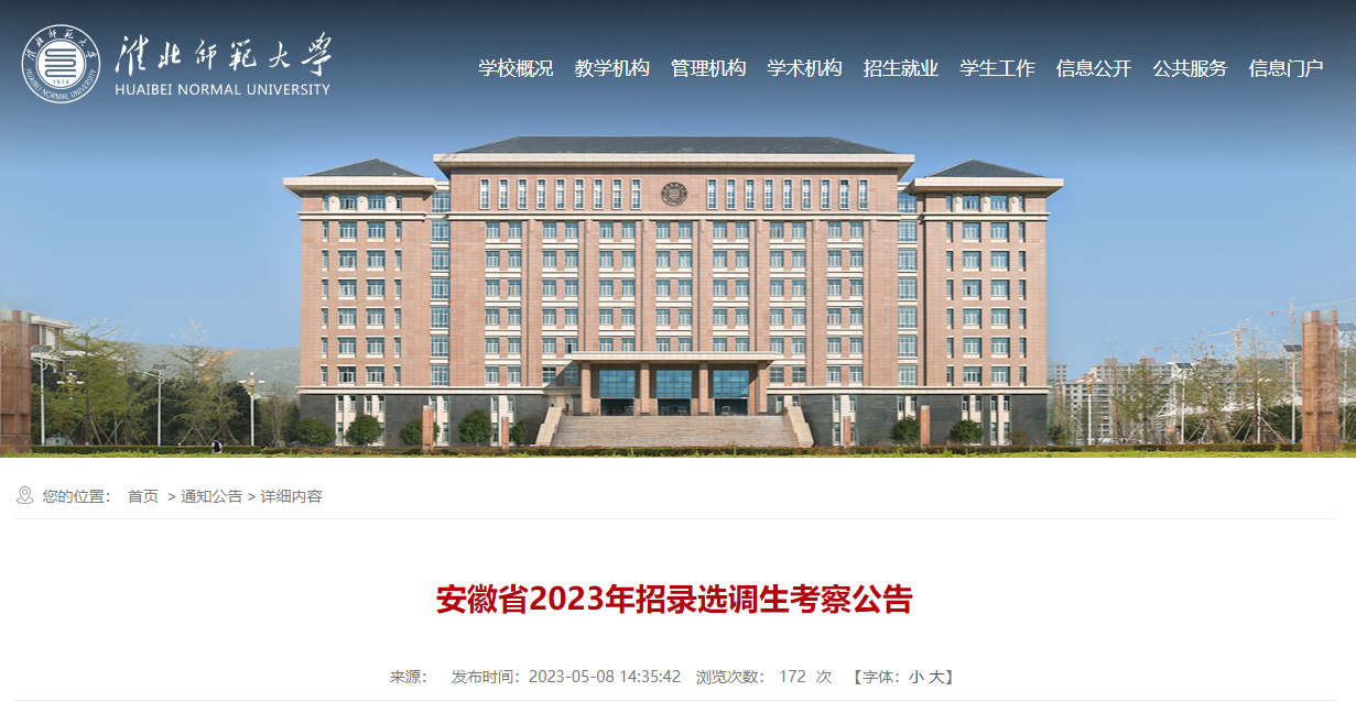 【#三支一扶# 导语】®文档大全网从淮北师范大学了解到,2023安徽省招录选调生公示时间为5月9日至 5月15日,相关事宜如下: