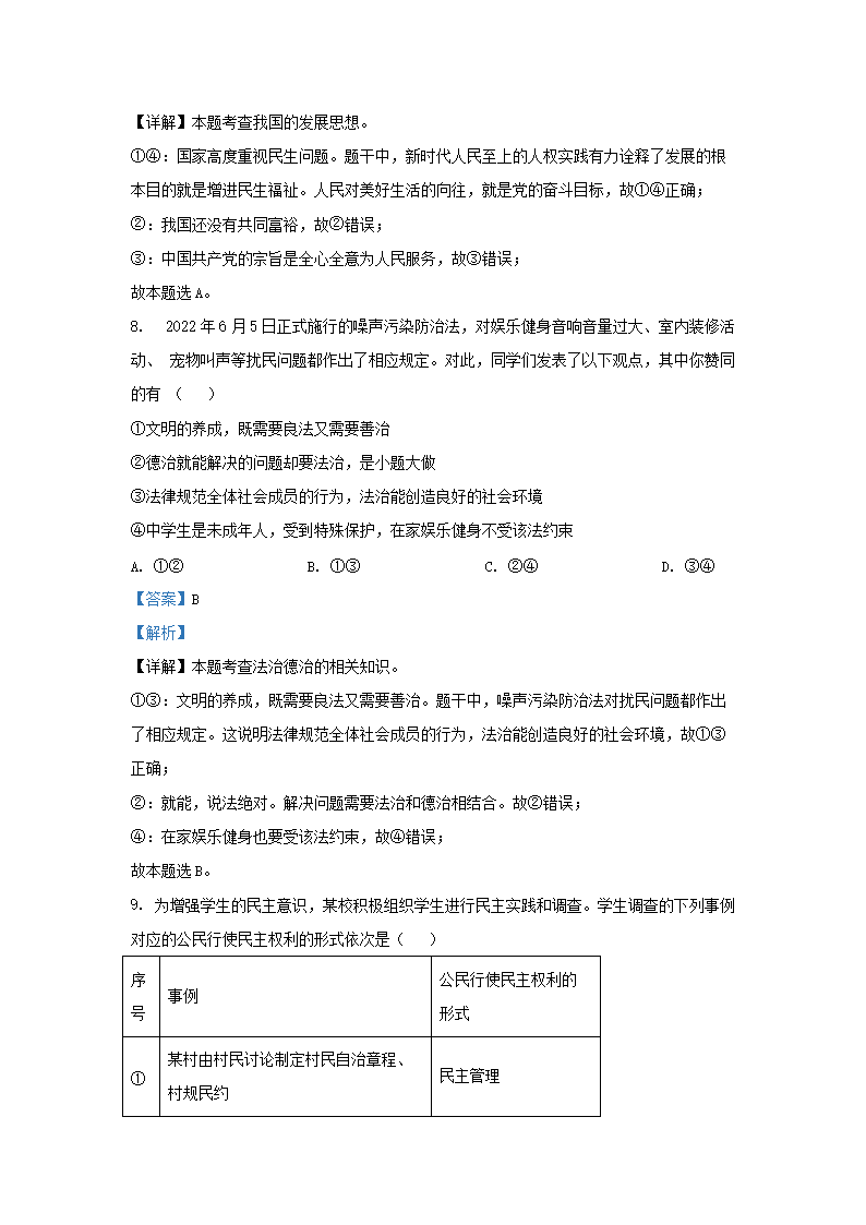 2022-2023学年北京密云区初三第一学期道德与法治期末试卷及答案(Word版)08-02