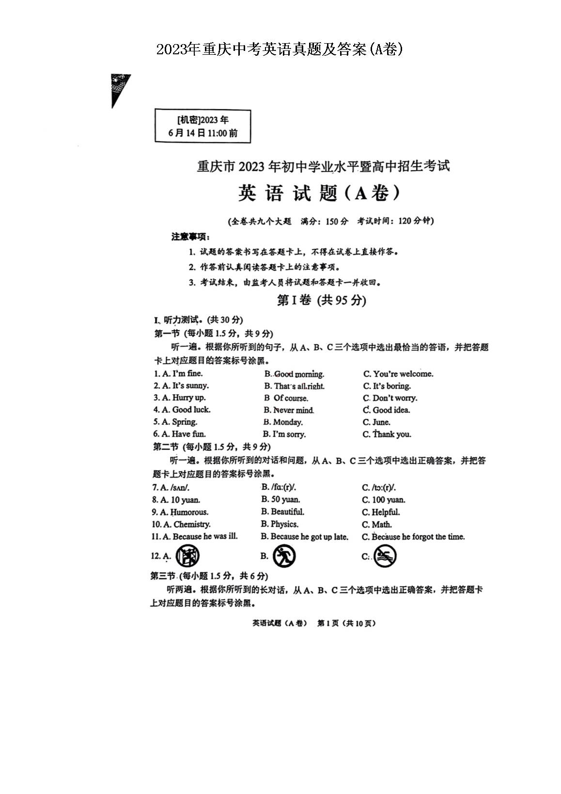 2023年重庆中考英语真题及答案(A卷)(图片版)06-17