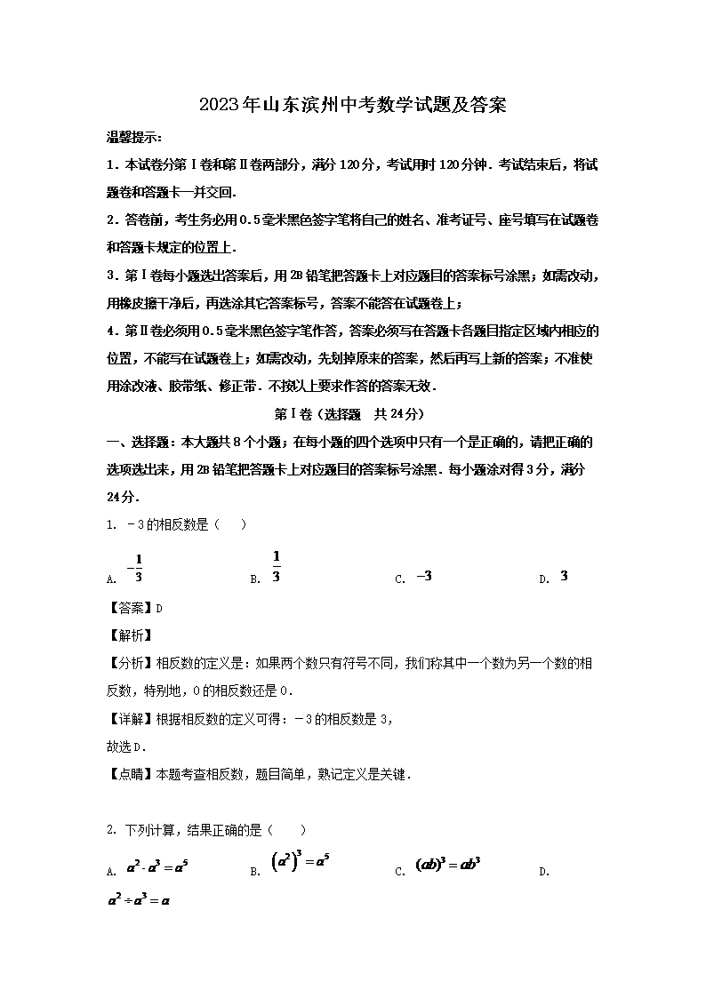 【文档预览】 文档大全网整理发布2023年山东滨州中考数学试题及答案(Word版),前五页预览如下: