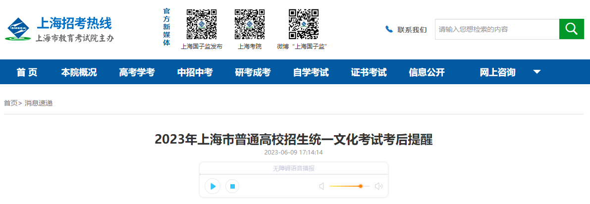 原文标题:2023年上海市普通高校招生统一文化考试考后提醒