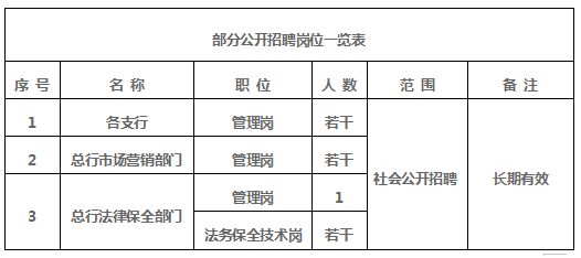 3.具备全日制大专及以上学历;应聘管理岗位人员应从事银行工作3年以上,应聘专业技术人员应从事银行工作1年以上;有银行法务工作经验或具有律师资格证者优先考虑;
