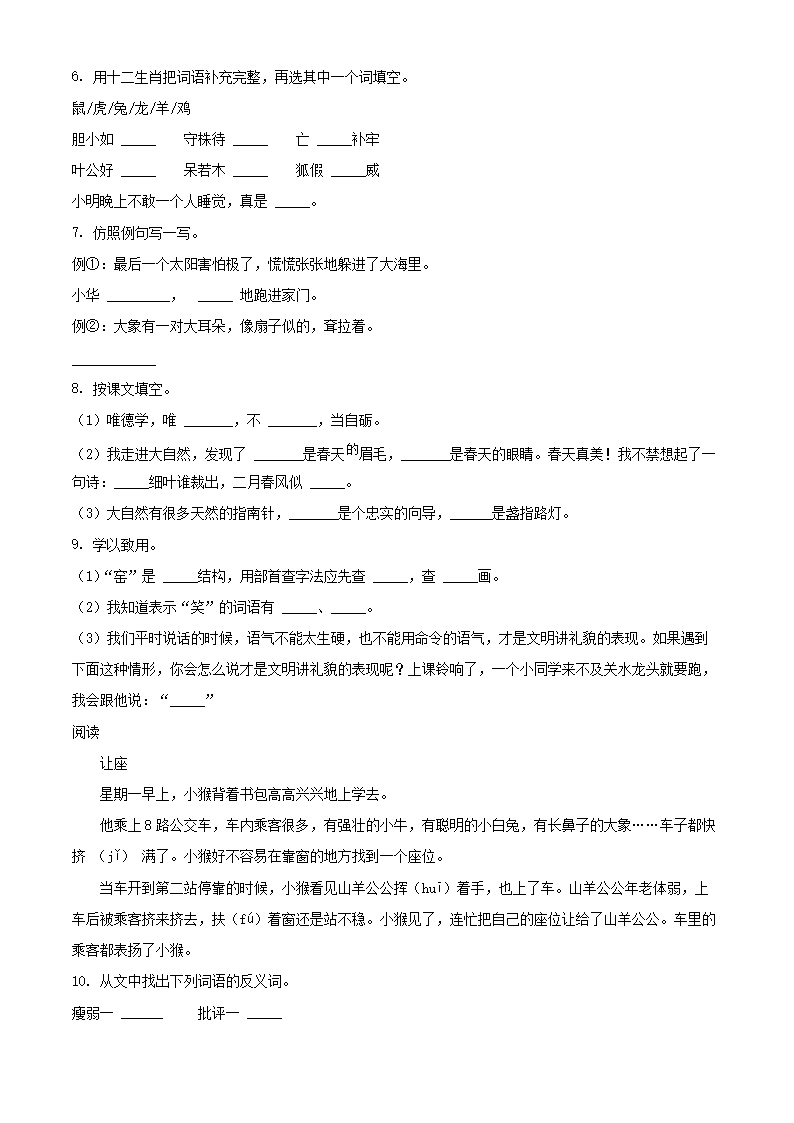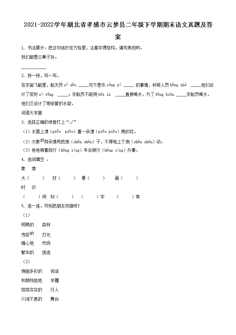 2021-2022学年湖北省孝感市云梦县二年级下学期期末语文真题及答案(Word版)07-01