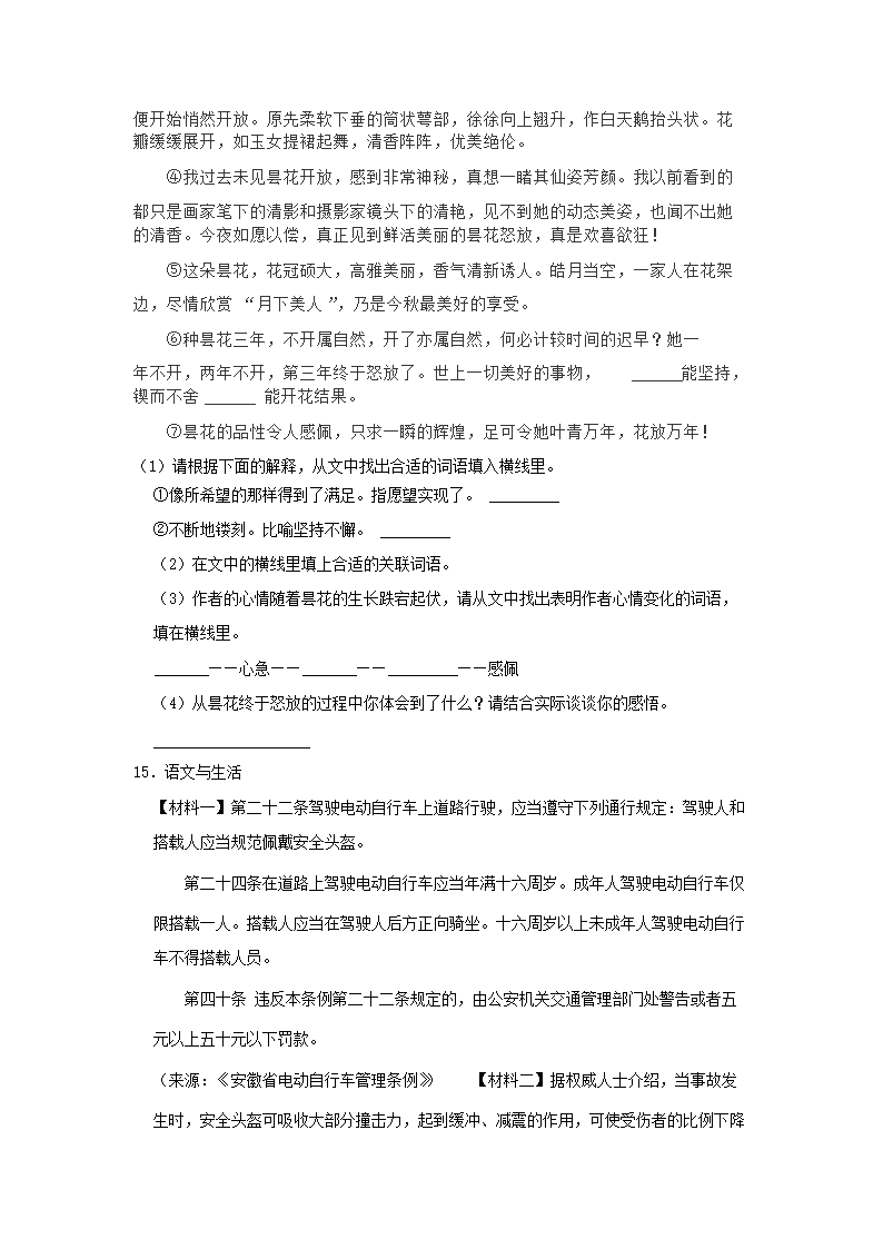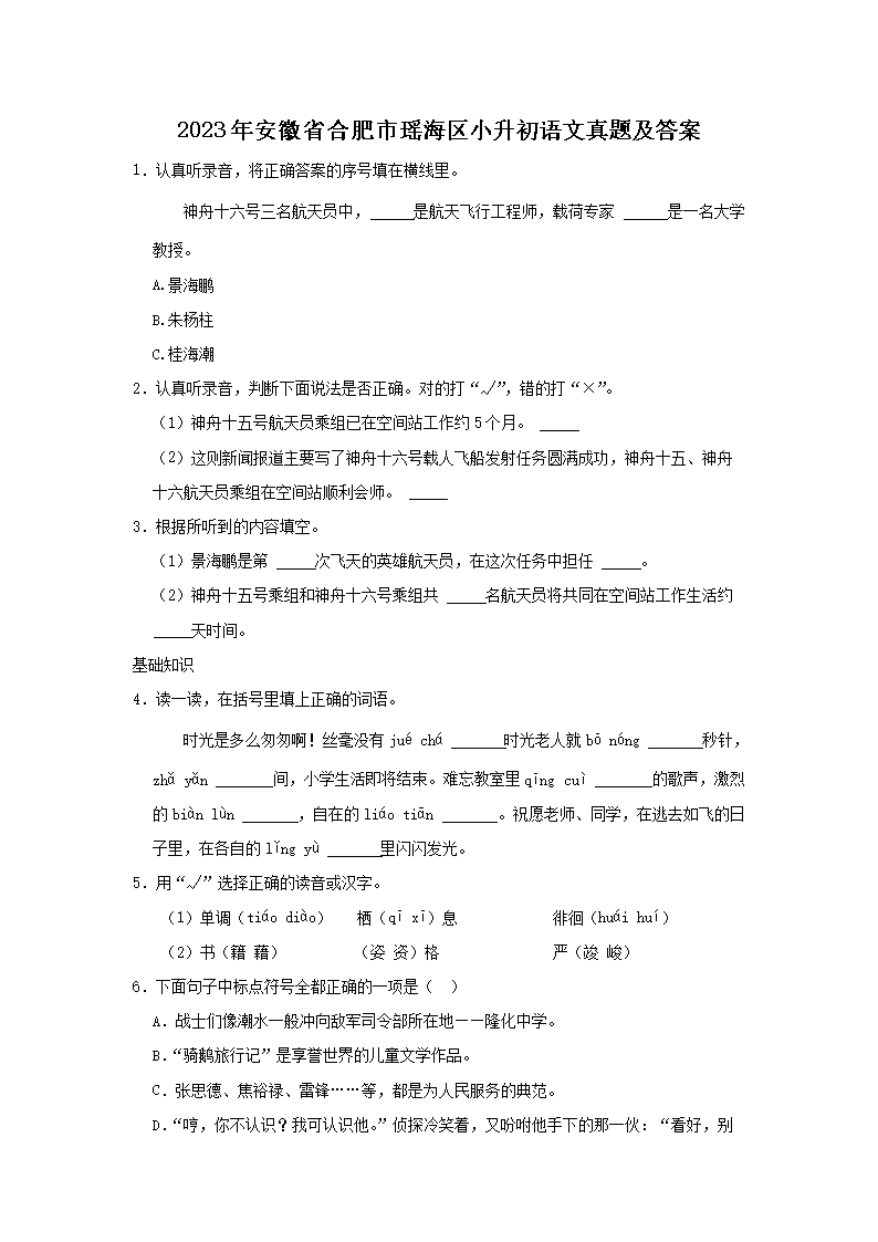 【文档预览】 文档大全网整理发布2023年安徽省合肥市瑶海区小升初语文真题及答案(Word版),前五页预览如下: