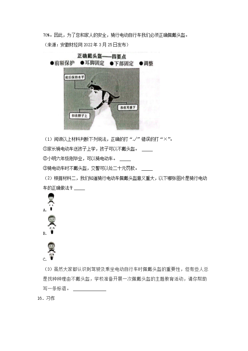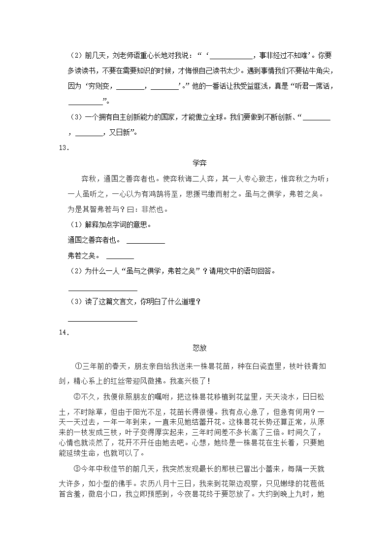 2023年安徽省合肥市瑶海区小升初语文真题及答案(Word版)09-22
