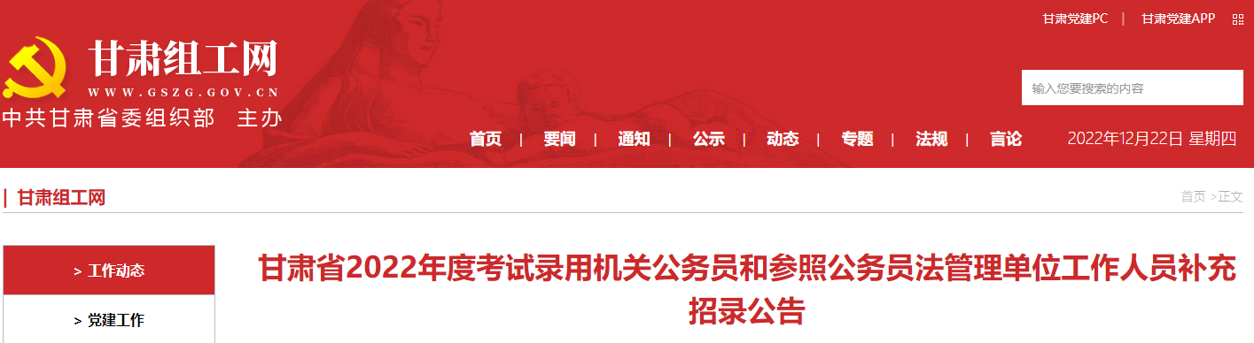 2022甘肃录用机关公务员和参照公务员法管理单位考试补充招录报名时间12-22