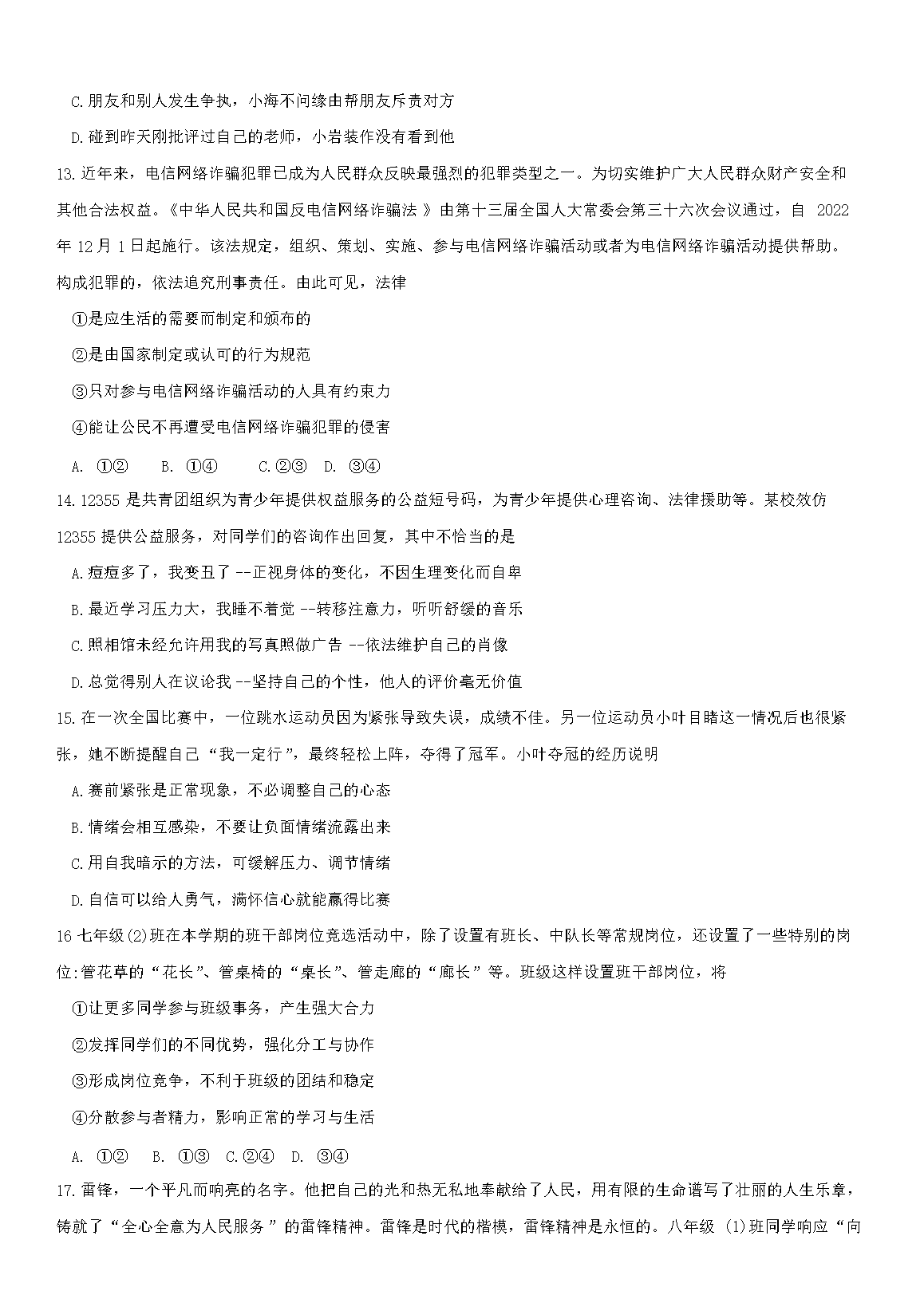 2023年河南洛阳中考道德与法治真题及答案(Word版)07-04