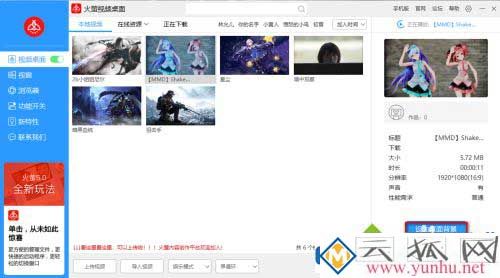 5、程序安装完成后进入的主界面,我们可以随机选择一个本地视频,然后点击下面的“设为桌面背景”的按钮。
