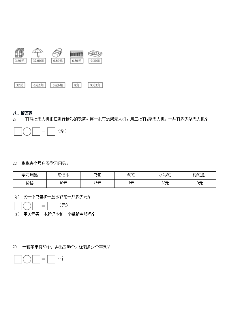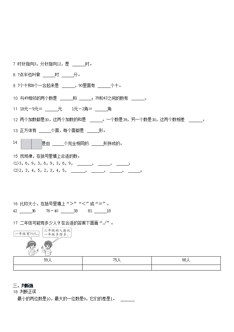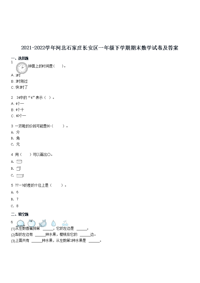 2021-2022学年河北石家庄长安区一年级下学期期末数学试卷及答案(Word版)07-06