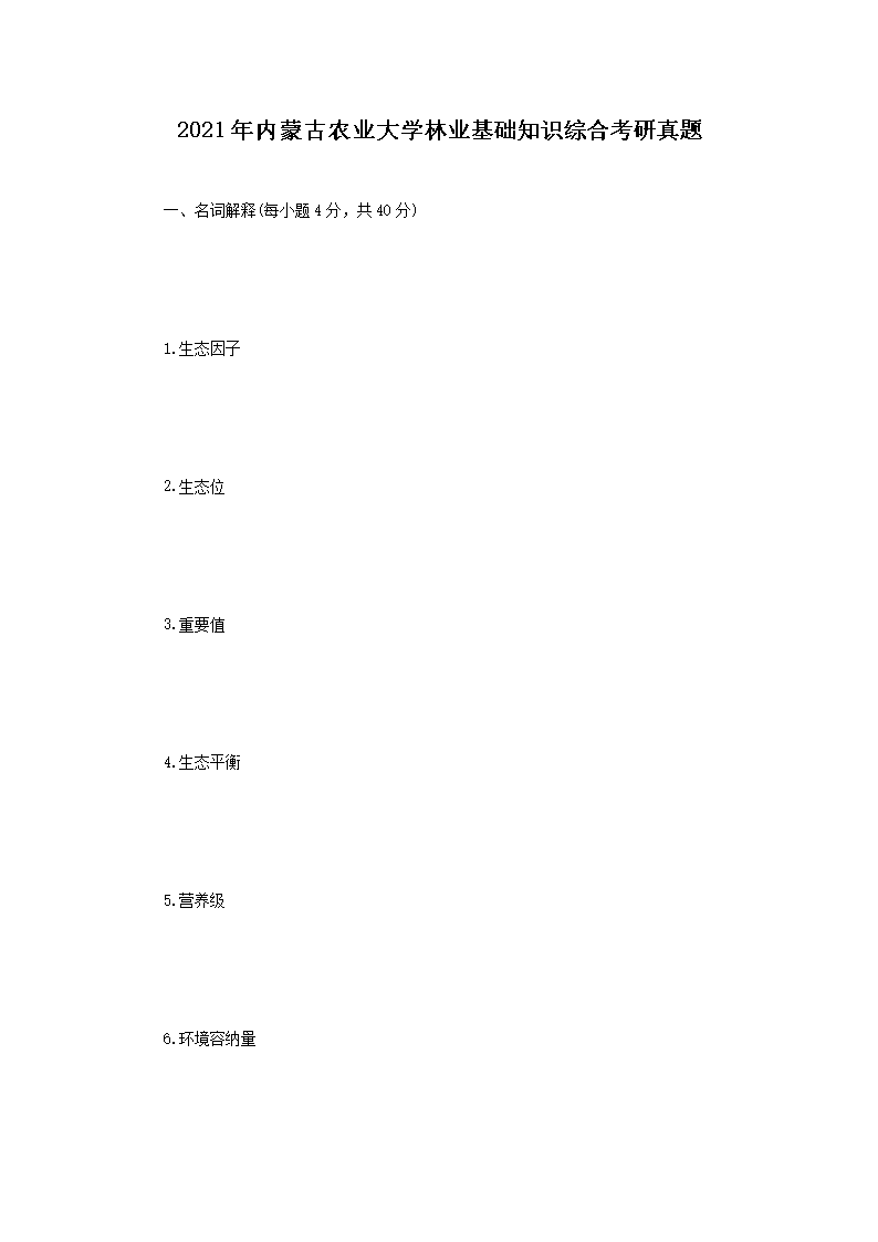 2021年内蒙古农业大学林业基础知识综合考研真题(Word版)07-11