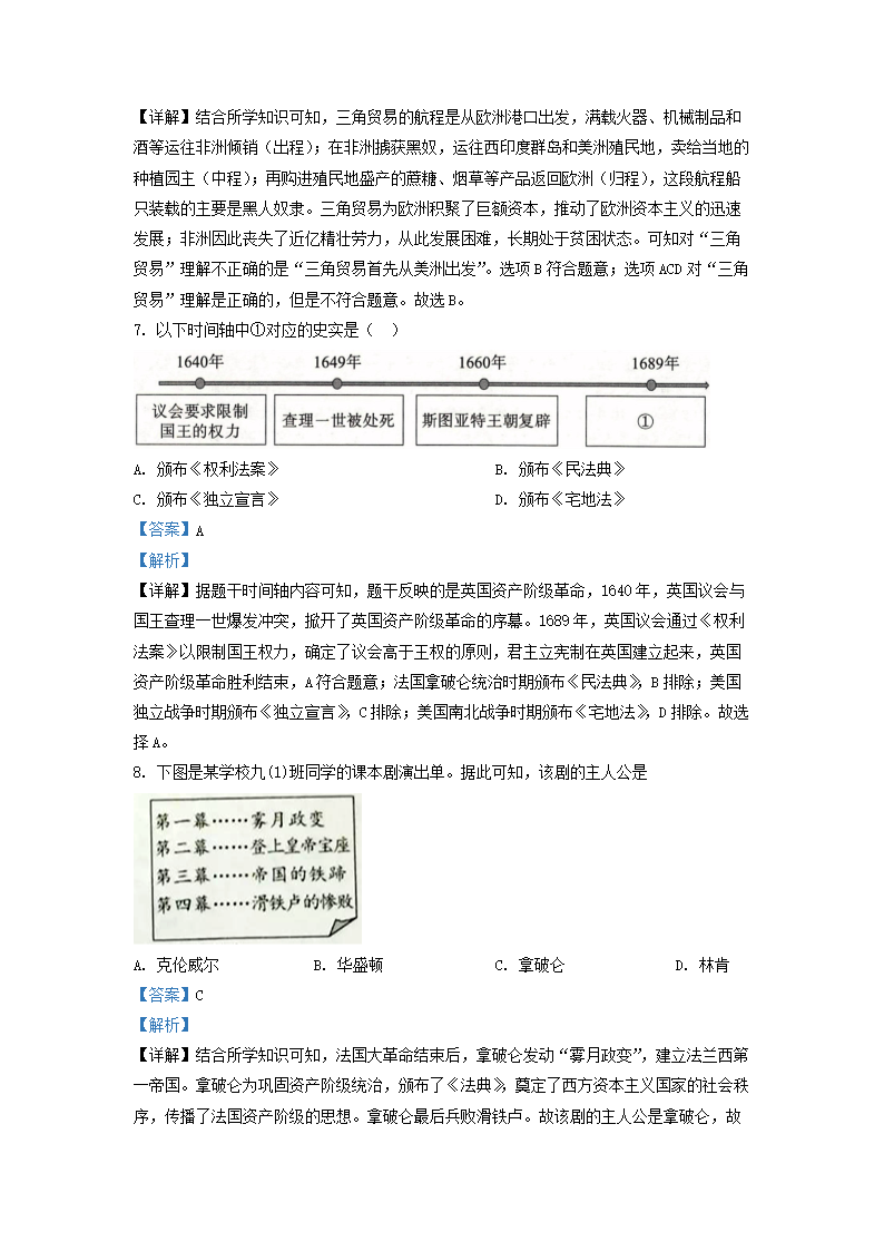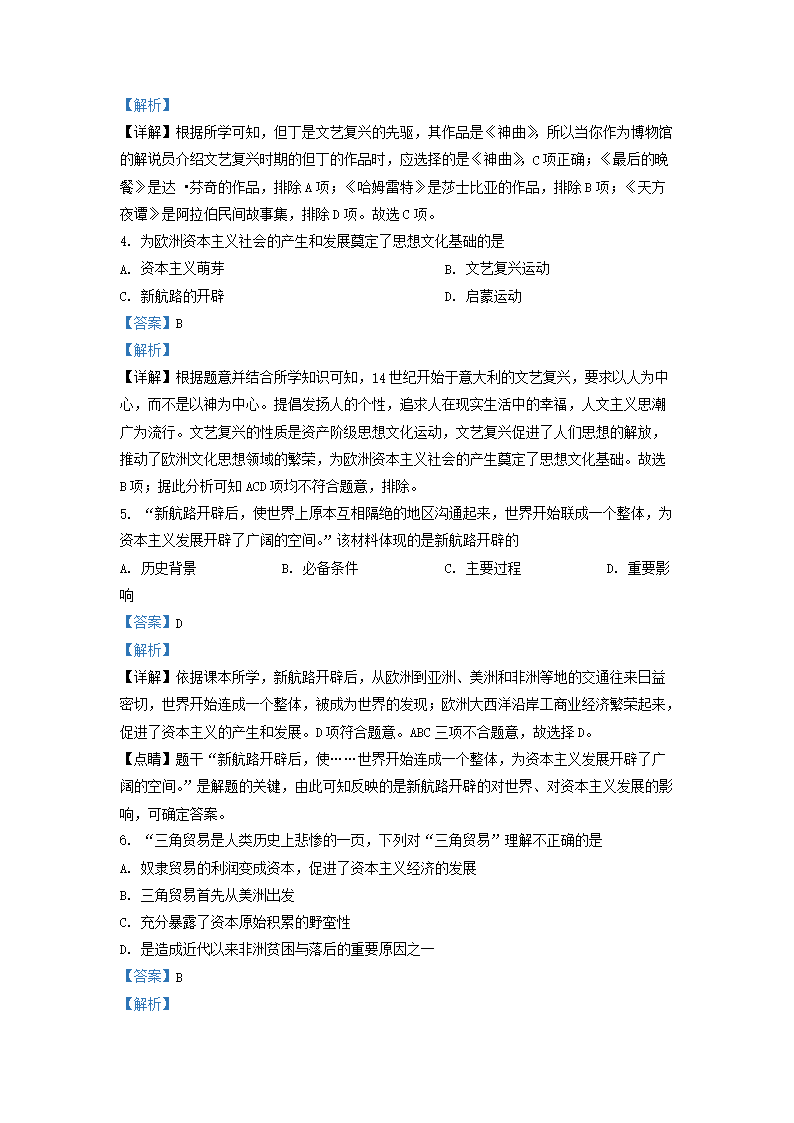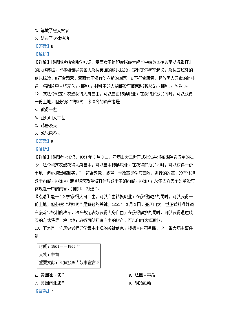 2020-2021学年北京延庆区初三第一学期历史期末试卷及答案(Word版)07-20