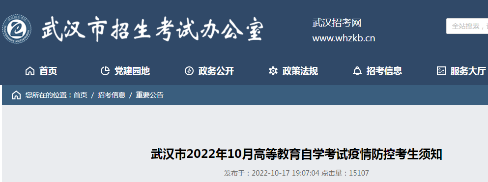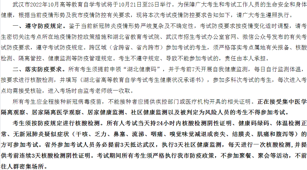 原文标题:武汉市2022年10月高等教育自学考试疫情防控考生须知