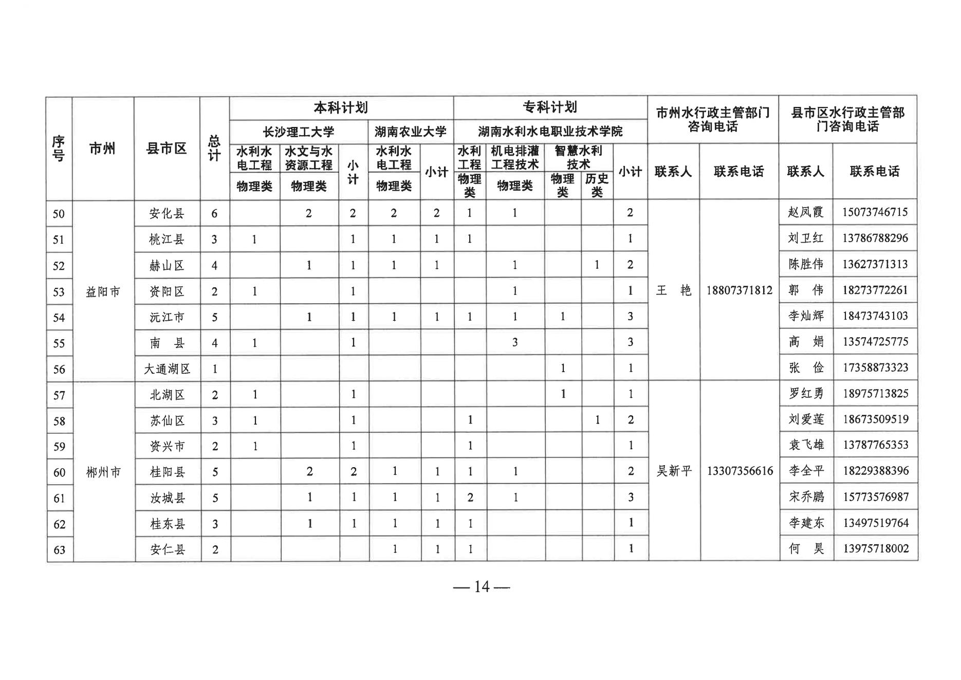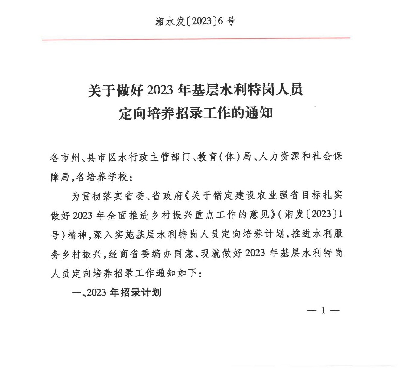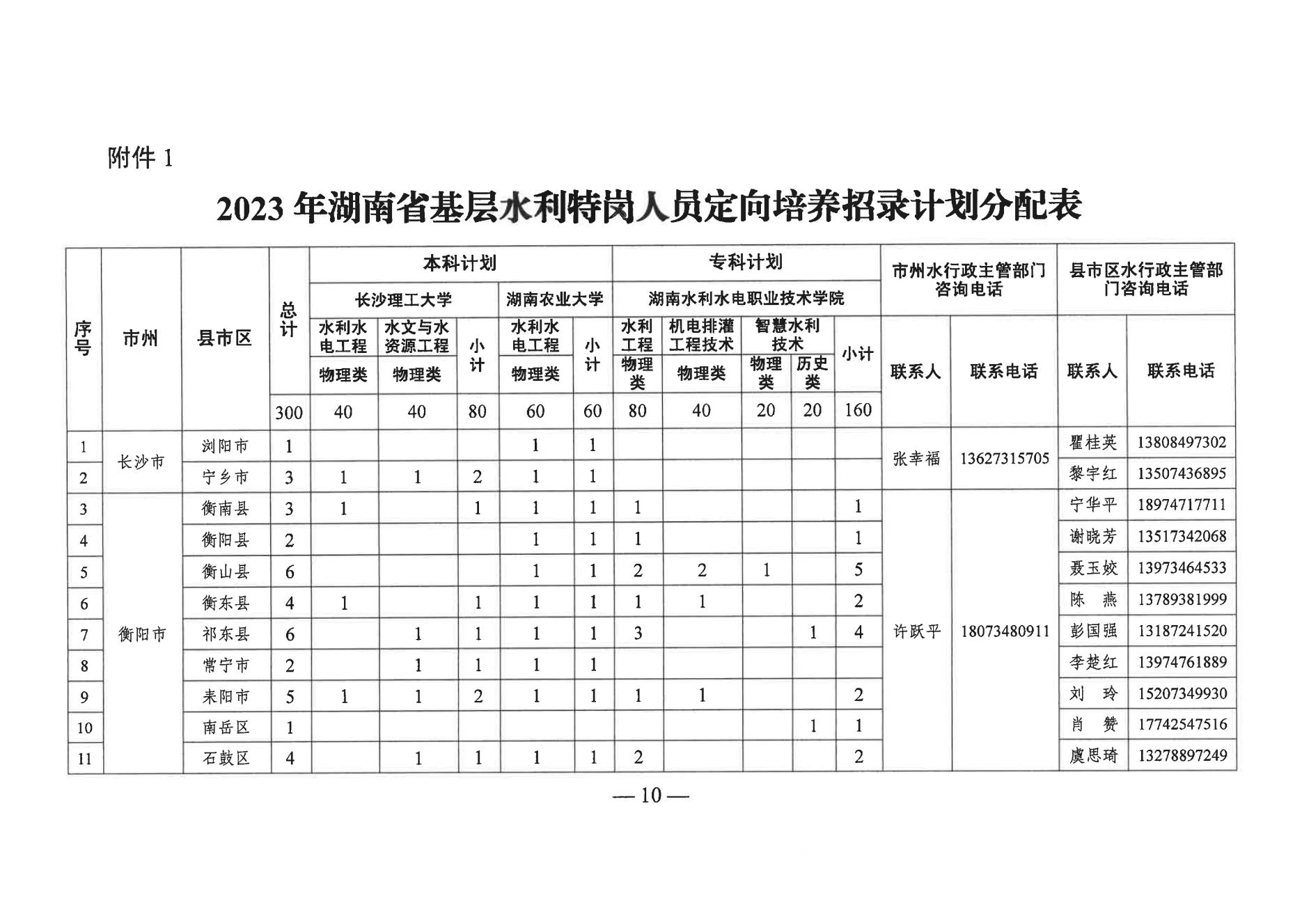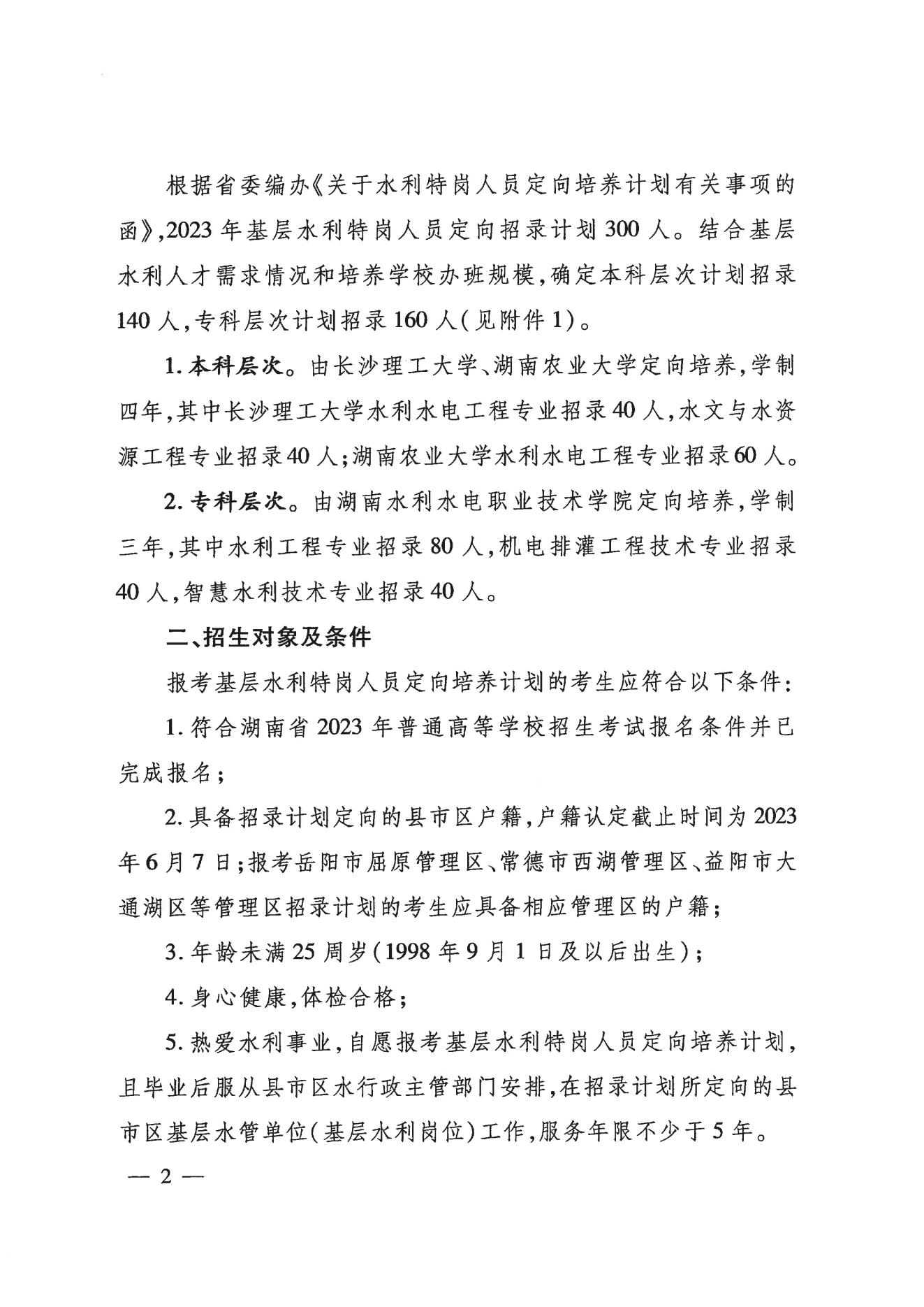 湖南省2023年基层水利特岗人员定向培养招录工作的通知06-09