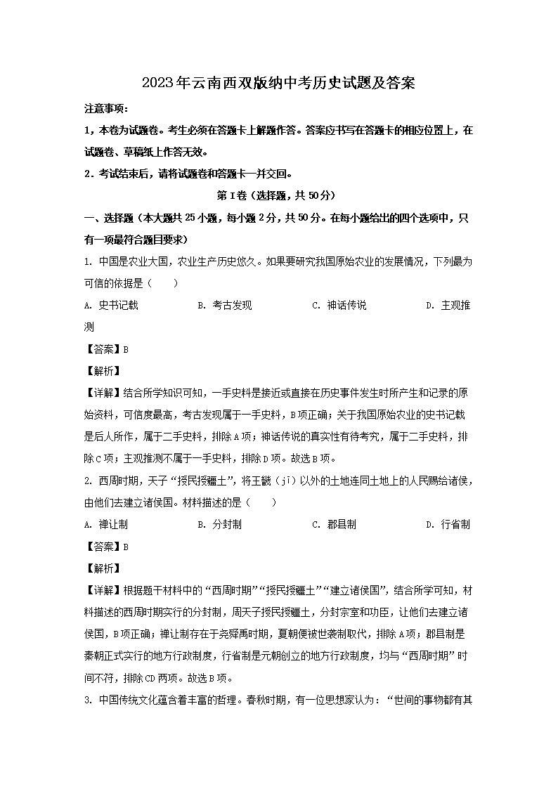 【文档预览】 文档大全网整理发布2023年云南西双版纳中考历史试题及答案(Word版),前五页预览如下: