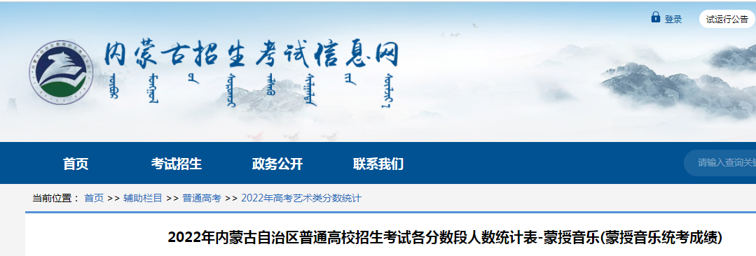 【#艺术高考# 导语】®文档大全网从内蒙古招生考试信息网了解到,2022年内蒙古自治区普通高校招生考试各分数段人数统计表-蒙授音乐(蒙授音乐统考成绩)。具体如下: