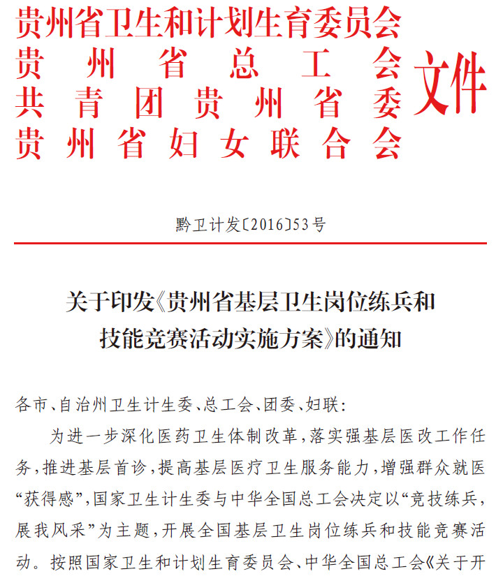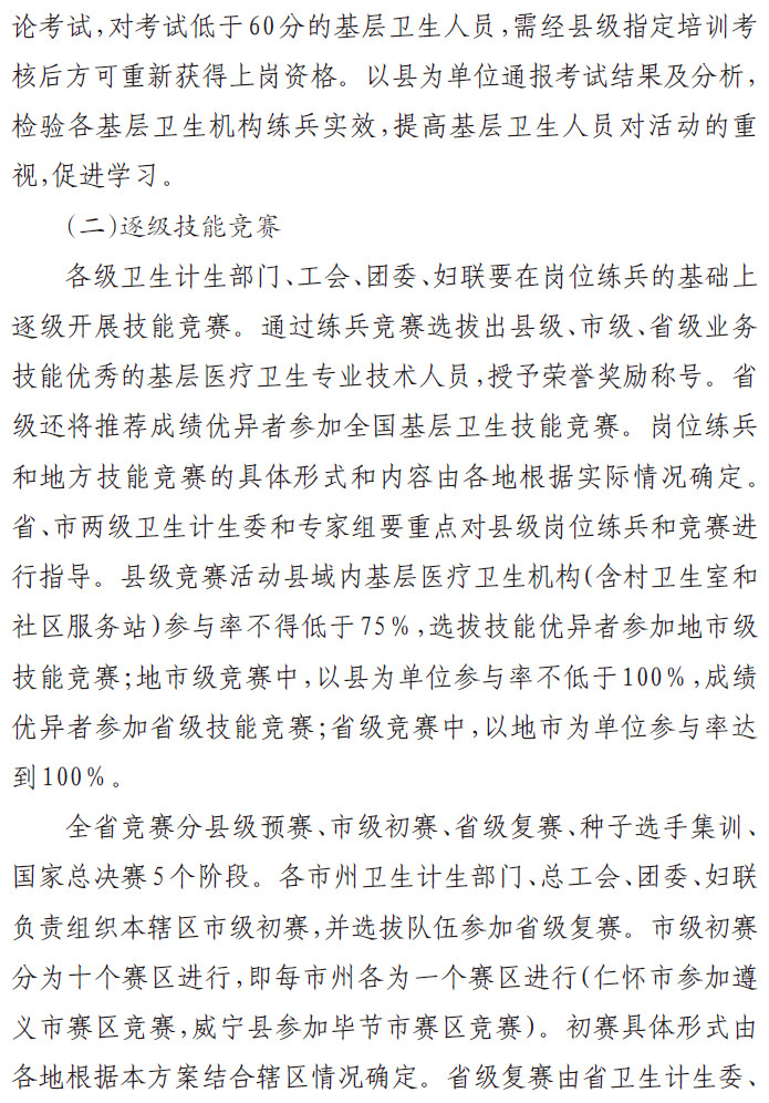 关于印发《贵州省基层卫生岗位练兵和技能竞赛活动实施方案》的通知