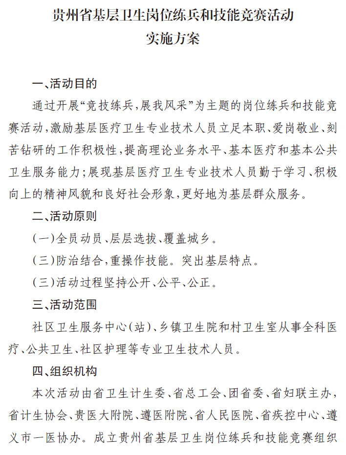 关于印发《贵州省基层卫生岗位练兵和技能竞赛活动实施方案》的通知05-11