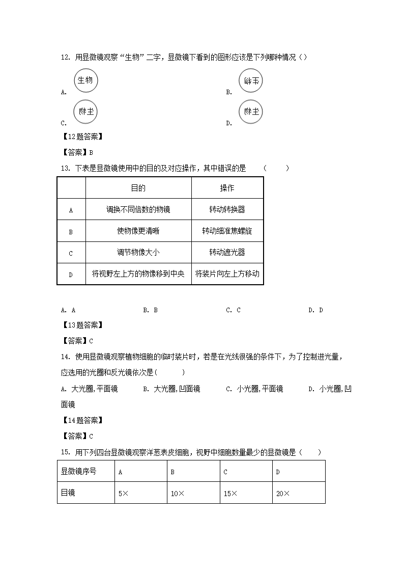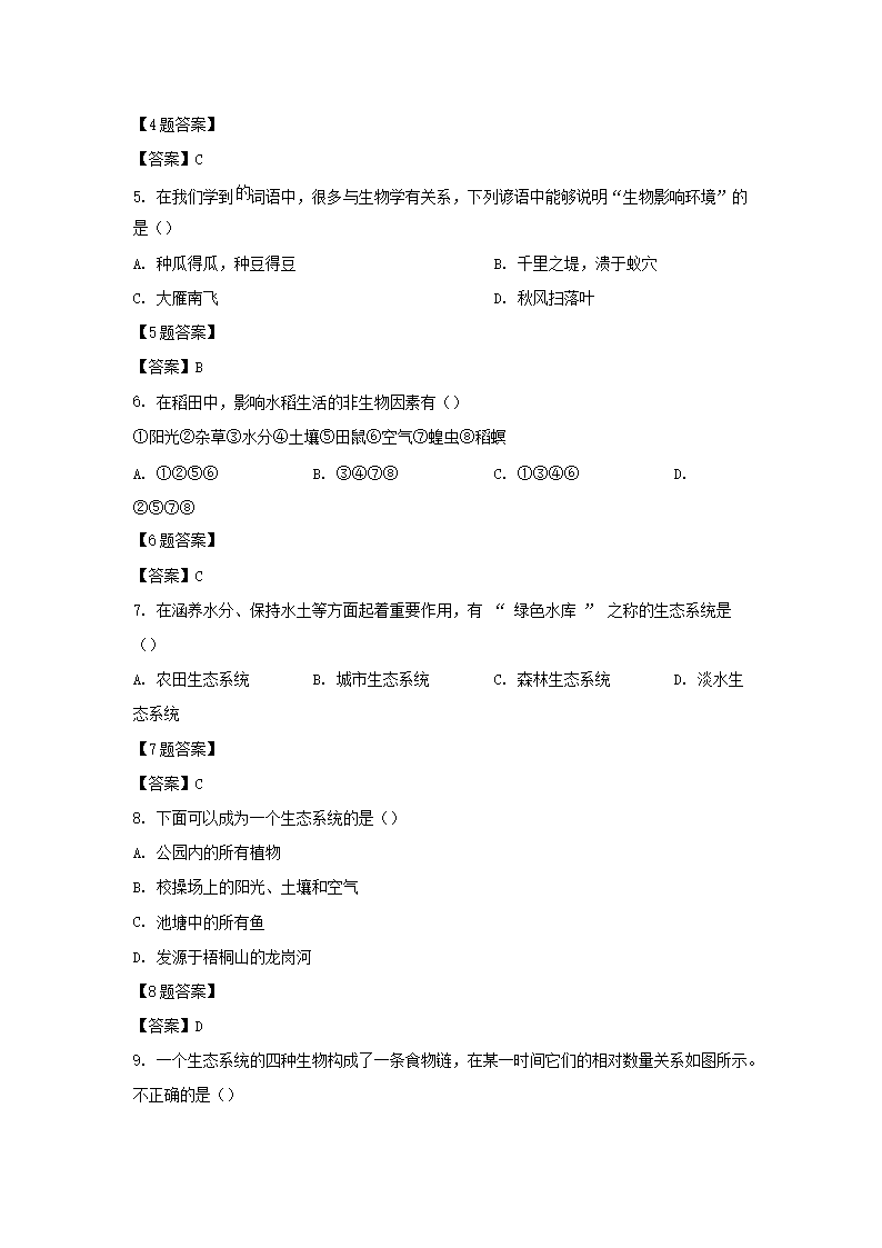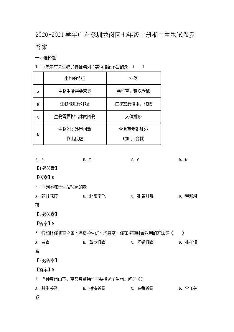 2020-2021学年广东深圳龙岗区七年级上册期中生物试卷及答案(Word版)09-21