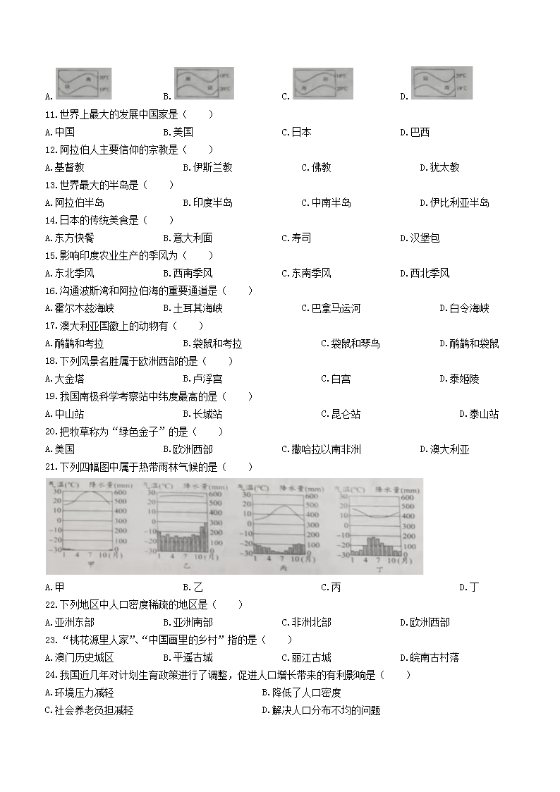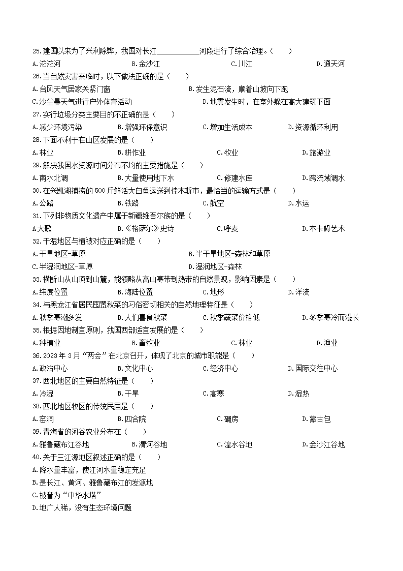 2023年黑龙江七台河中考地理真题及答案(Word版)06-29