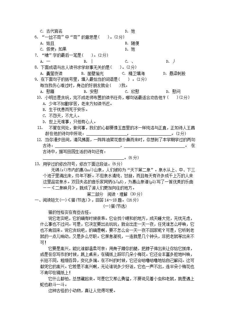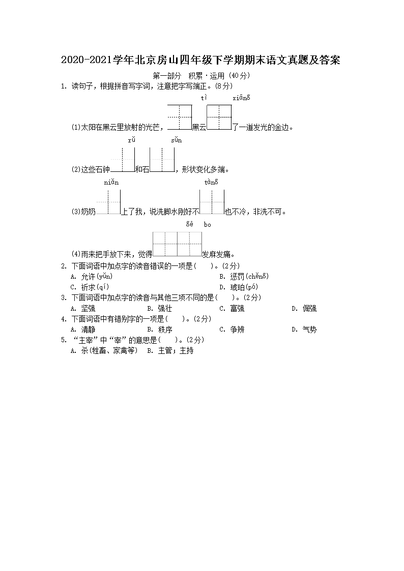 2020-2021学年北京房山四年级下学期期末语文真题及答案(Word版)07-04