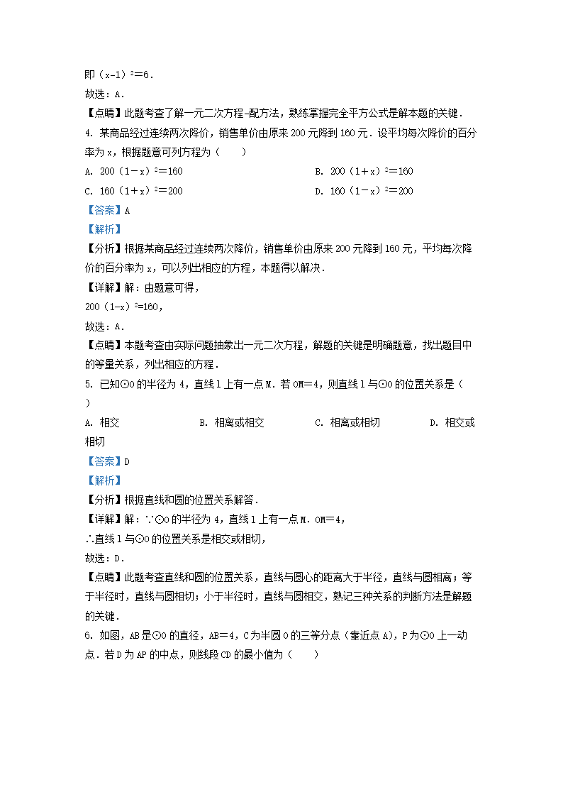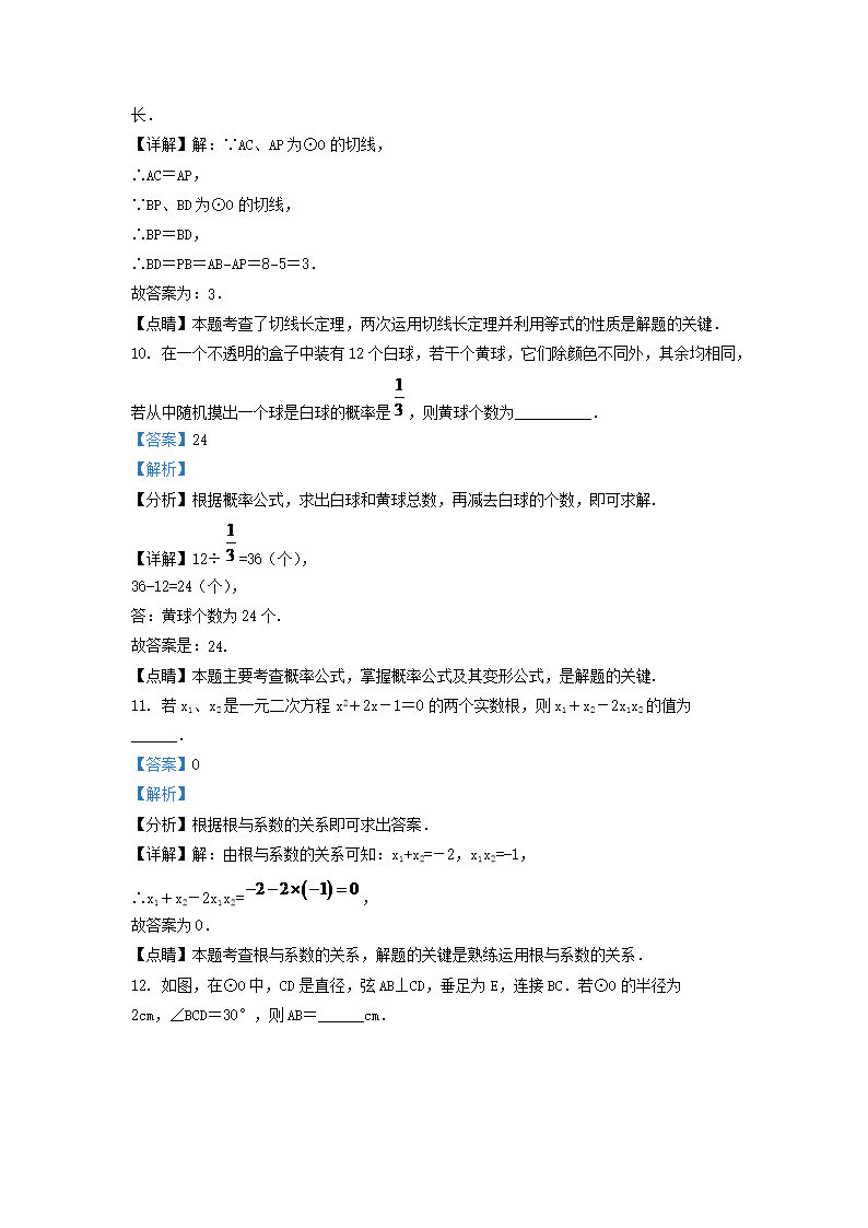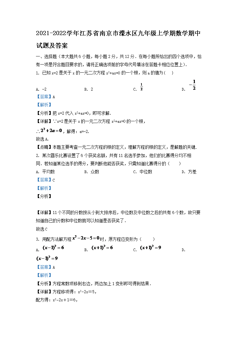 2021-2022学年江苏省南京市溧水区九年级上学期数学期中试题及答案(Word版)09-27