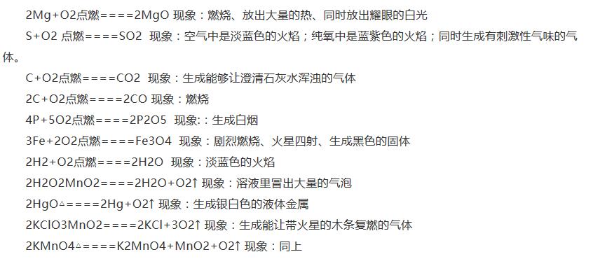 2017中考初三化学方程式总结:与氧气有关06-06