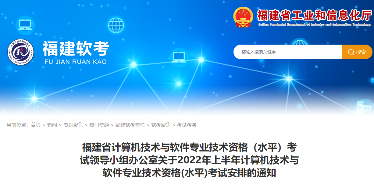【#软考# 导语】©文档大全网从福建省工业和信息化厅了解到,2022上半年福建软考报名时间:3月24日-4月2日,考试时间:5月28日-29日,更多事宜请参考阅读《考务通知》,官方公告原文如下: