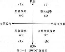 4.在SWOT分析图上定位,确定企业的战略能力(见图3—2)。