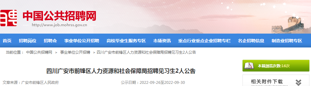 2022年四川省广安市前锋区人力资源和社会保障局见习生招聘公告【2人】09-27