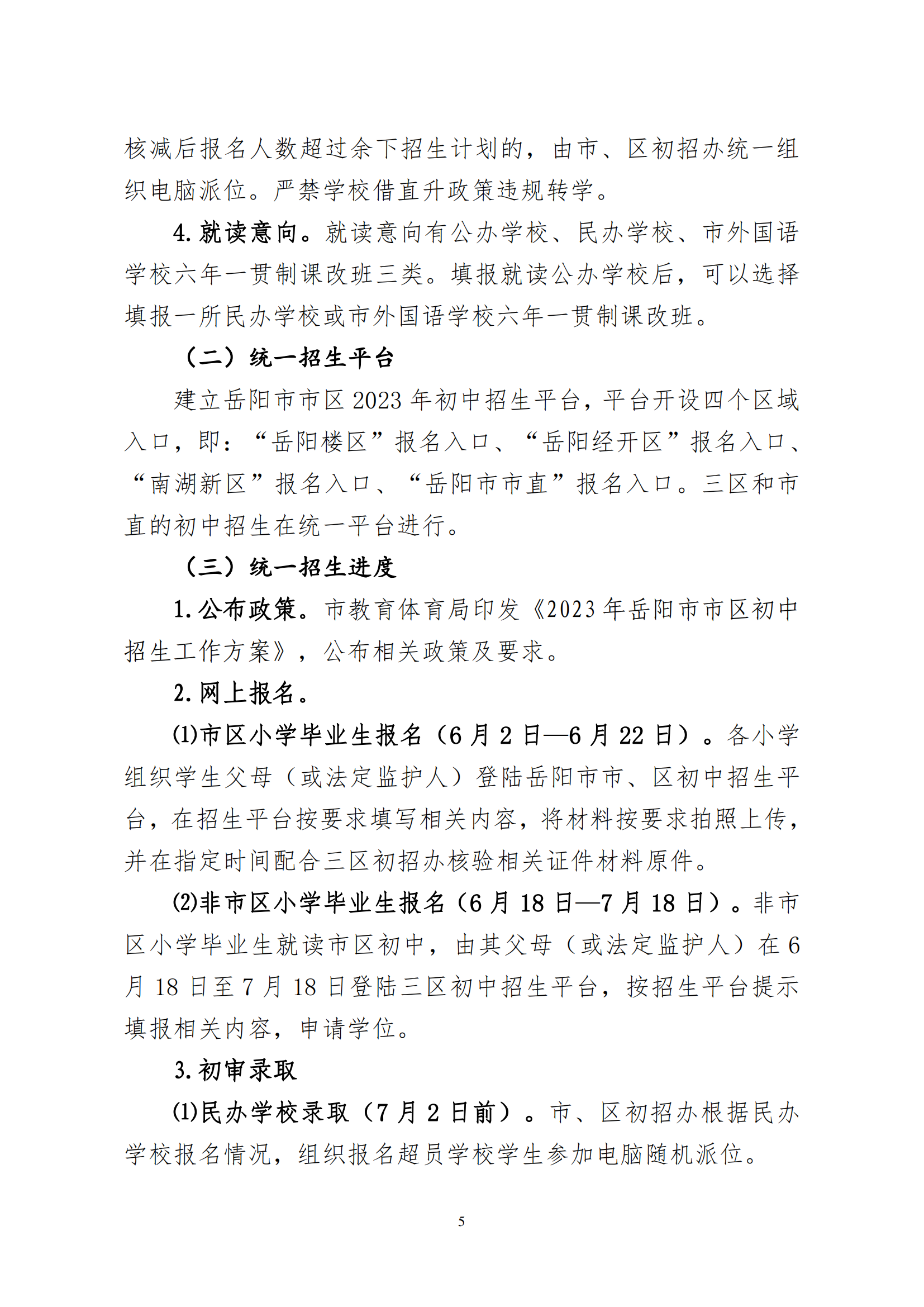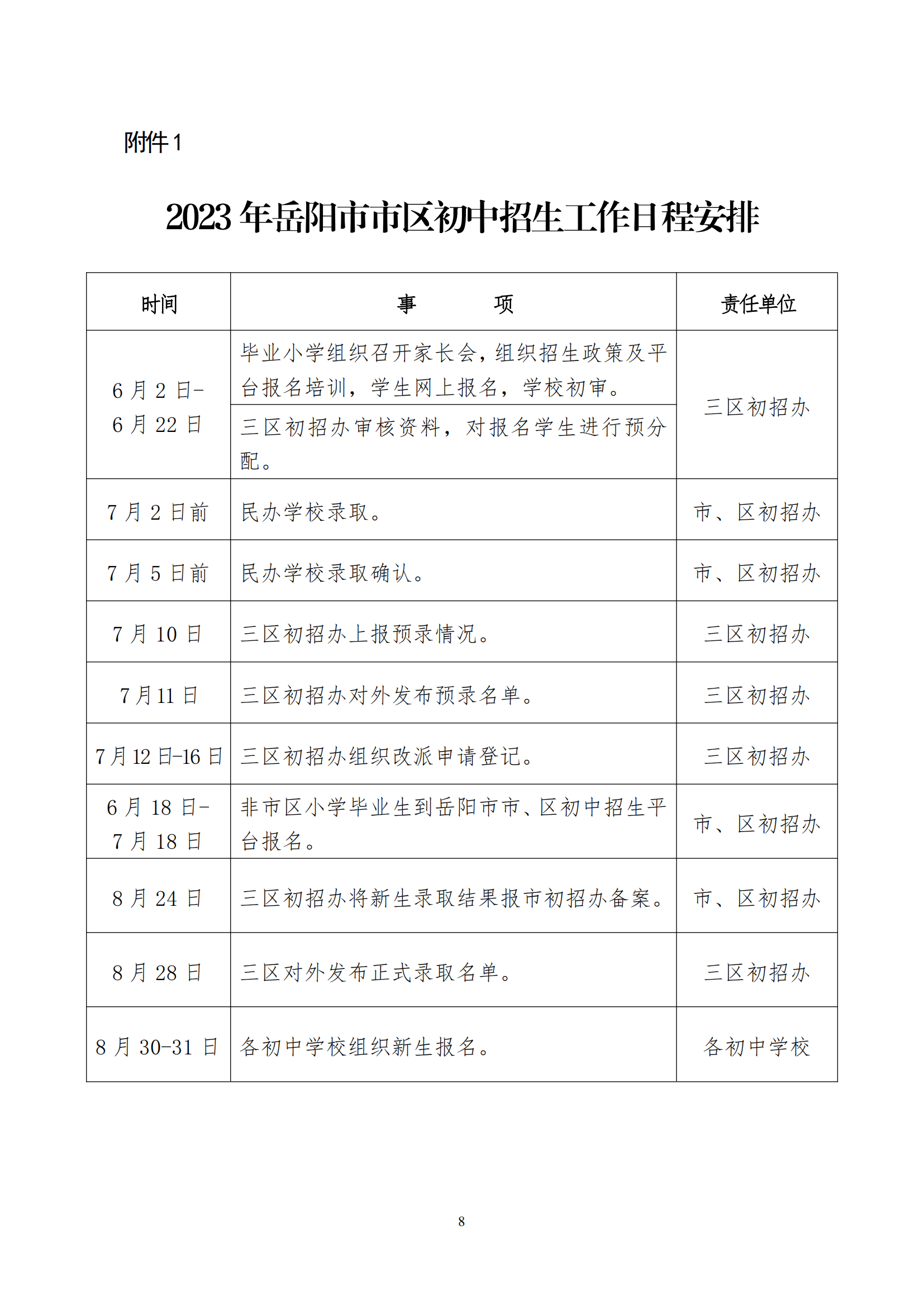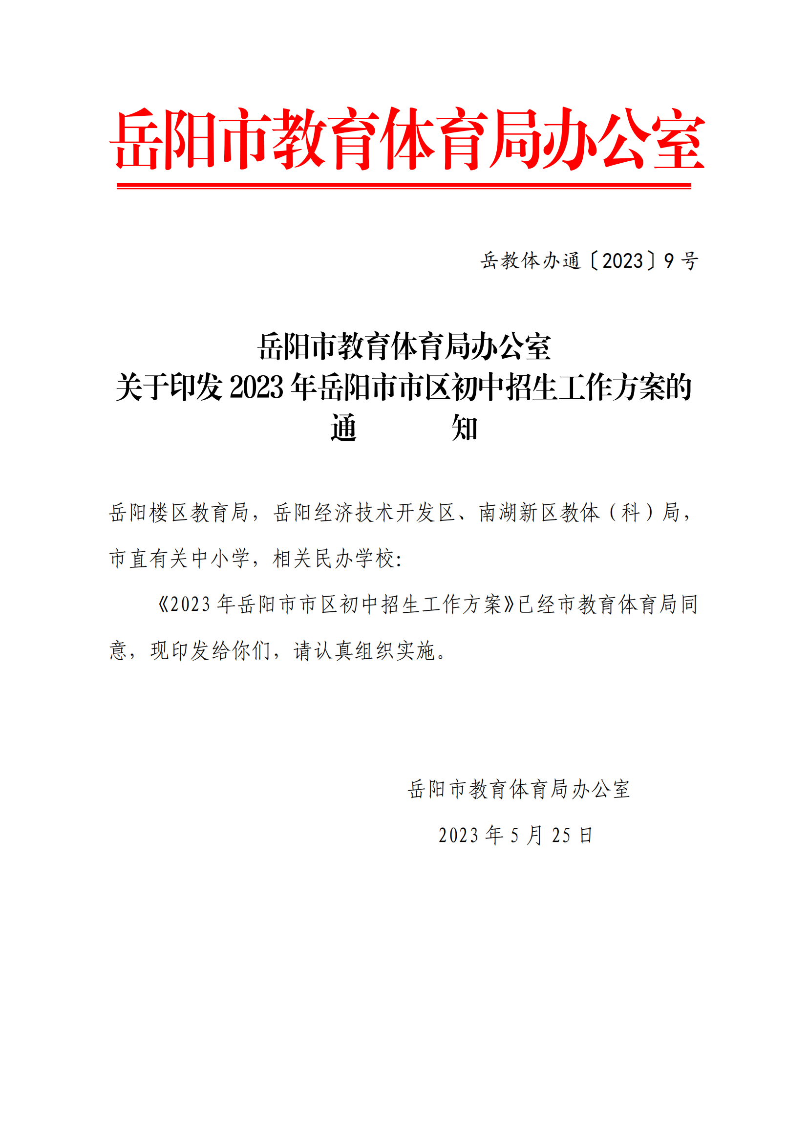 原文标题:岳阳市教育体育局办公室关于印发2023年岳阳市市区初中招生工作方案的通知
