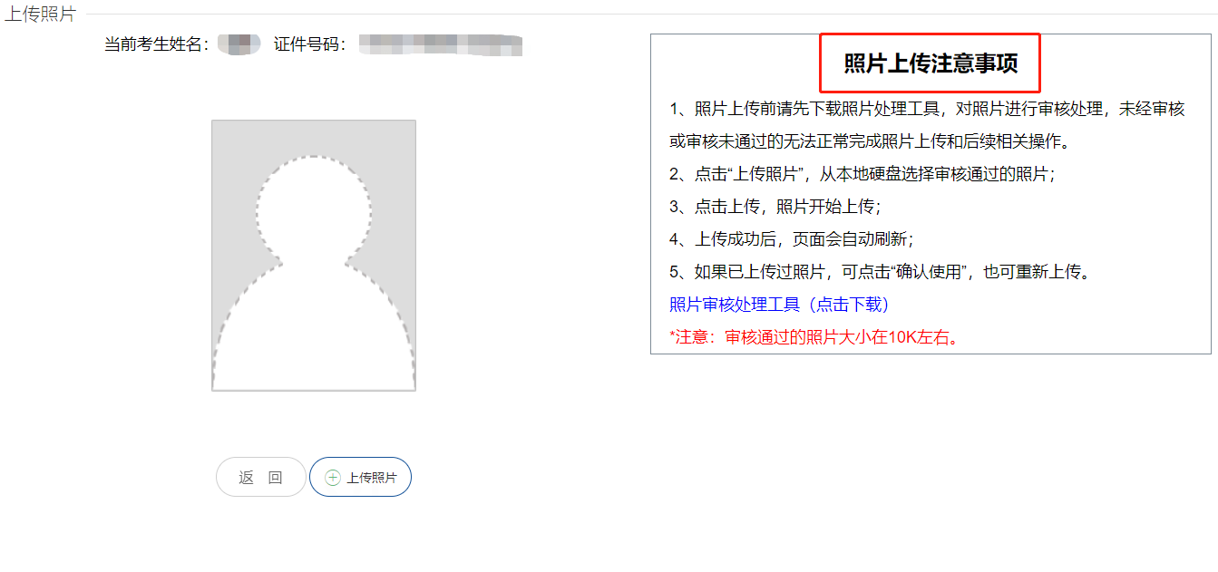 报考人员应下载系统提供的“照片审核处理工具”对照片进行处理,未通过“照片审核处理工具”进行处理的照片无法上传。报考人员应对照片质量负责,如因照片质量影响考试的,后果由报考人员承担。