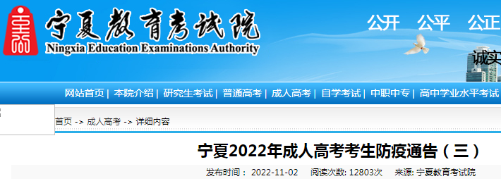 原文标题:宁夏2022年成人高考考生防疫通告(三)